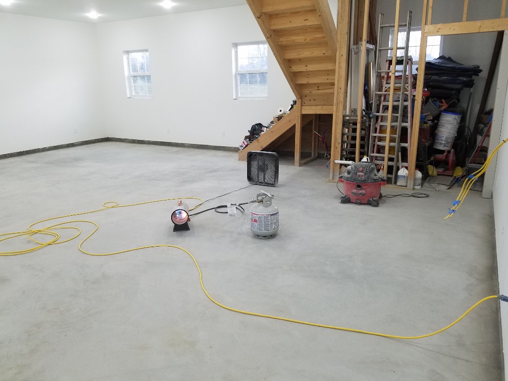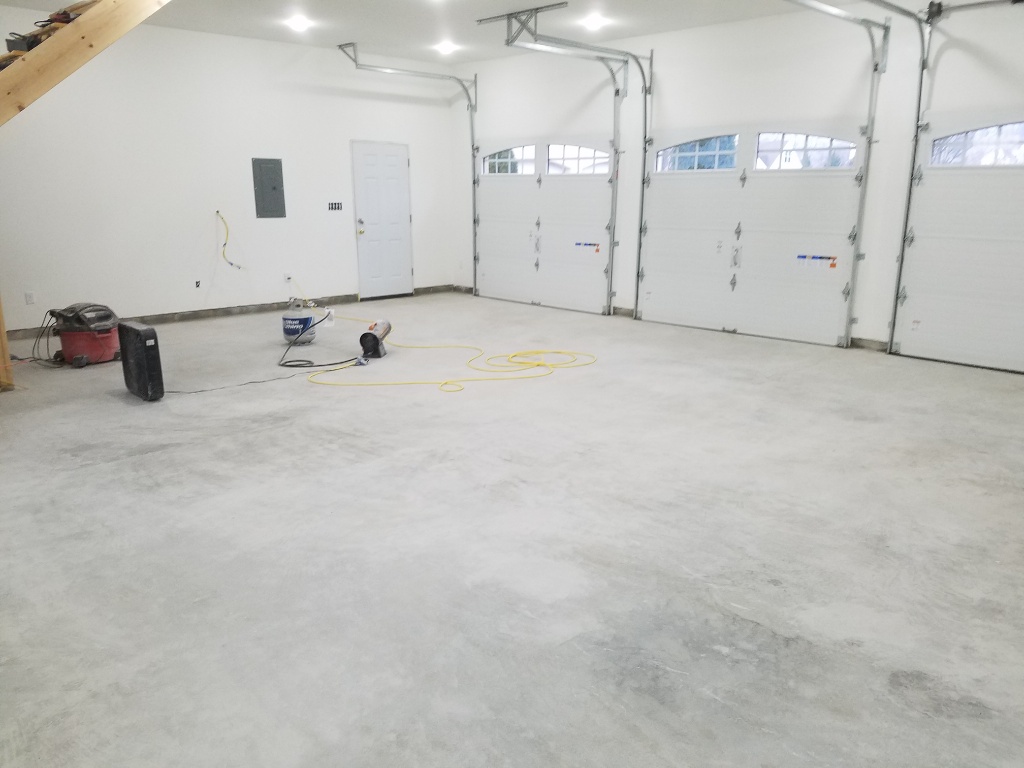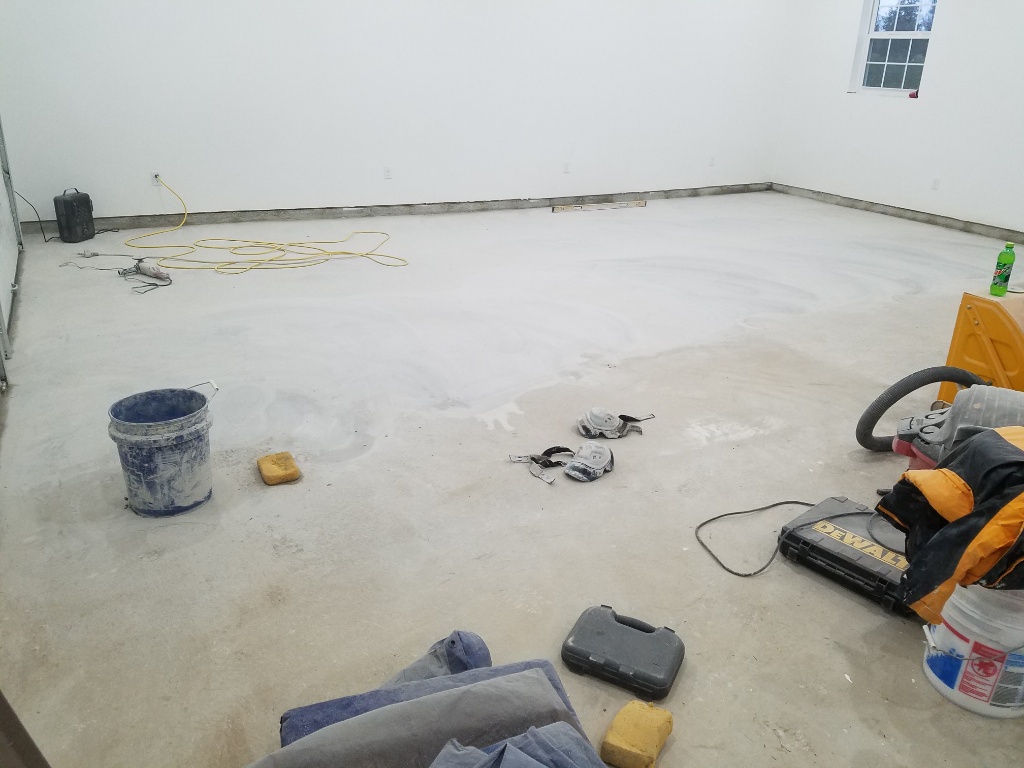 The floor is WAY smoother so that's good. Jack's, engine cranes and creepers with roll smooth now. Still not as flat as I might wish for but without a level you can't tell so good enough.