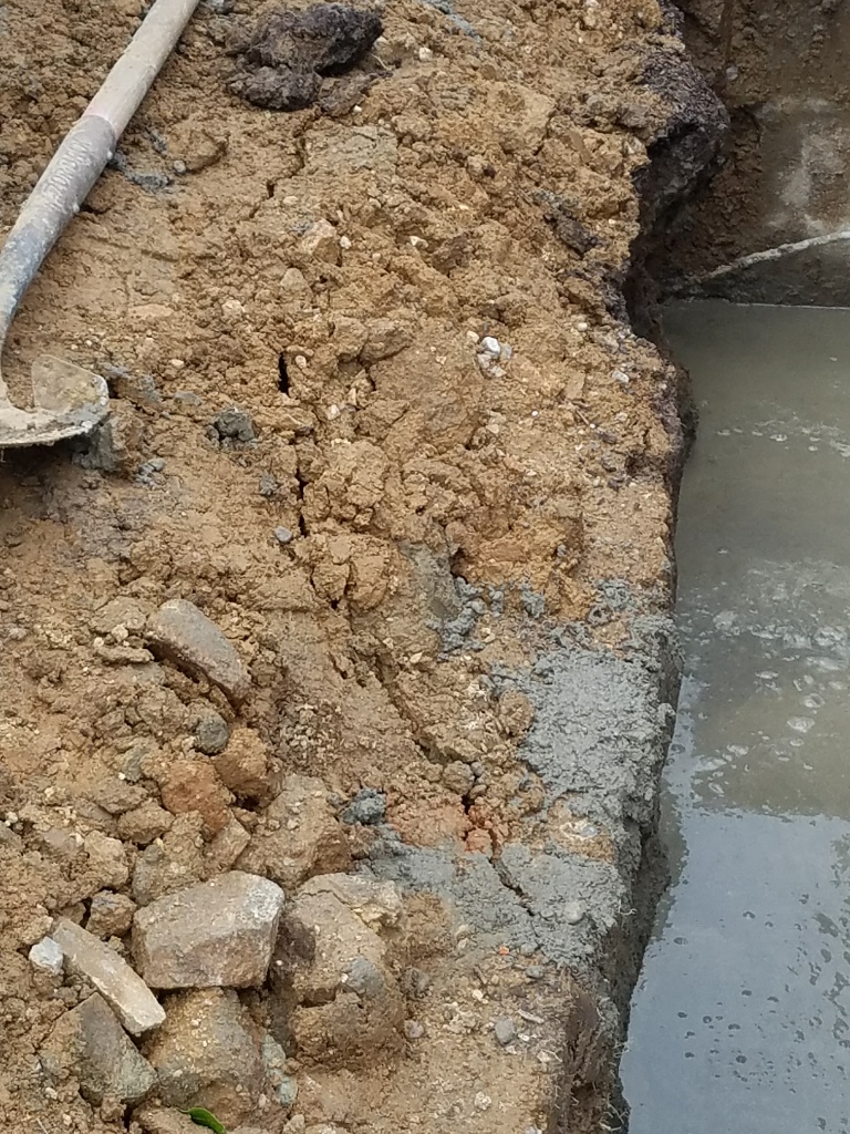 After I got done digging, mostly with a pick, it was too late to pour on Saturday yo know I'd beat the rain. In the morning the rain was done and just a little dirt to clean out...15 minutes. Nice.