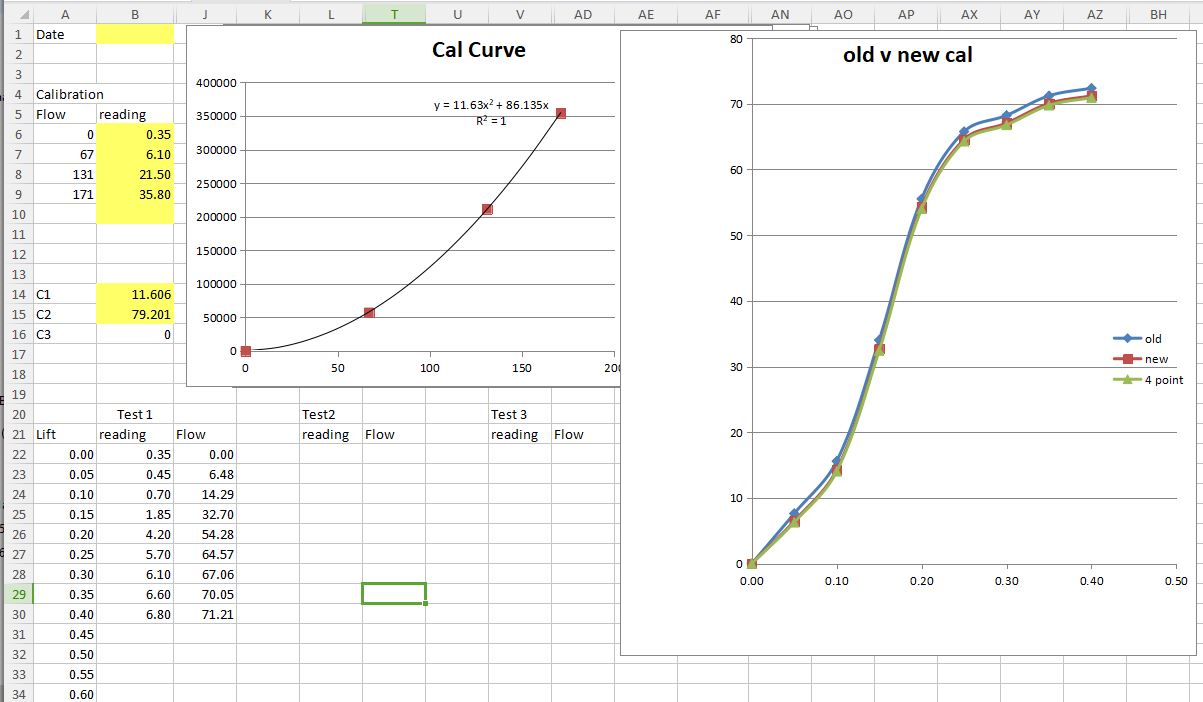 I put the plate on and measure the flow, the manometer reading goes into excel, excel gives me values for an the equation of the line that goes through the points and I plug the equation values into a table calculator so I had a calibrated table I can look at to convert my manometer readings to actual flow values. When I'm on the bench I work directly in manometer readings, more is better and once the development is done I know exactly what readings I'm looking for to match the other ports to the 1st.....so the cal table just tells me what to plug into dynomation and lets me make a pretty graph to post on the forum :)