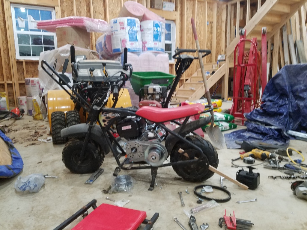 So here's my excuse for no pics.... .my camera burned in the basement fire so I use my phone now, but I also use my phone for music and I don't get wifi 9n the far side of the garage were there was space to work on the minibike ....yup, pretty sad excuse.