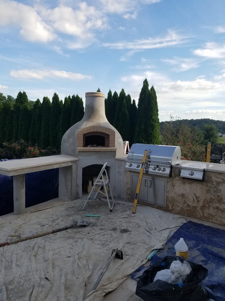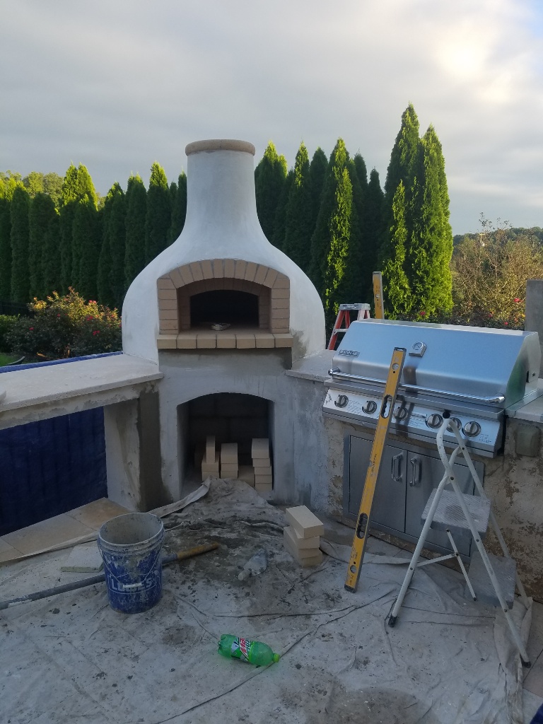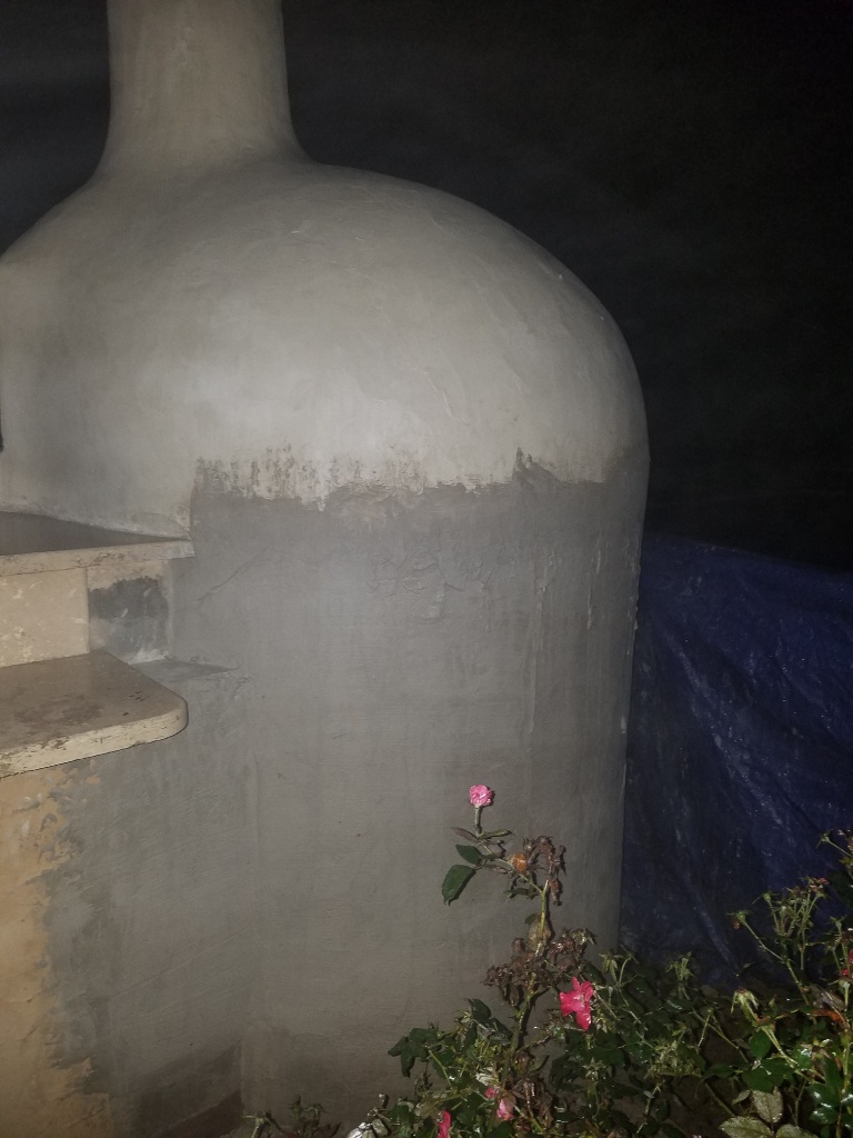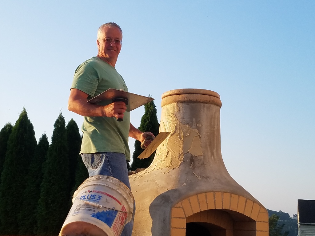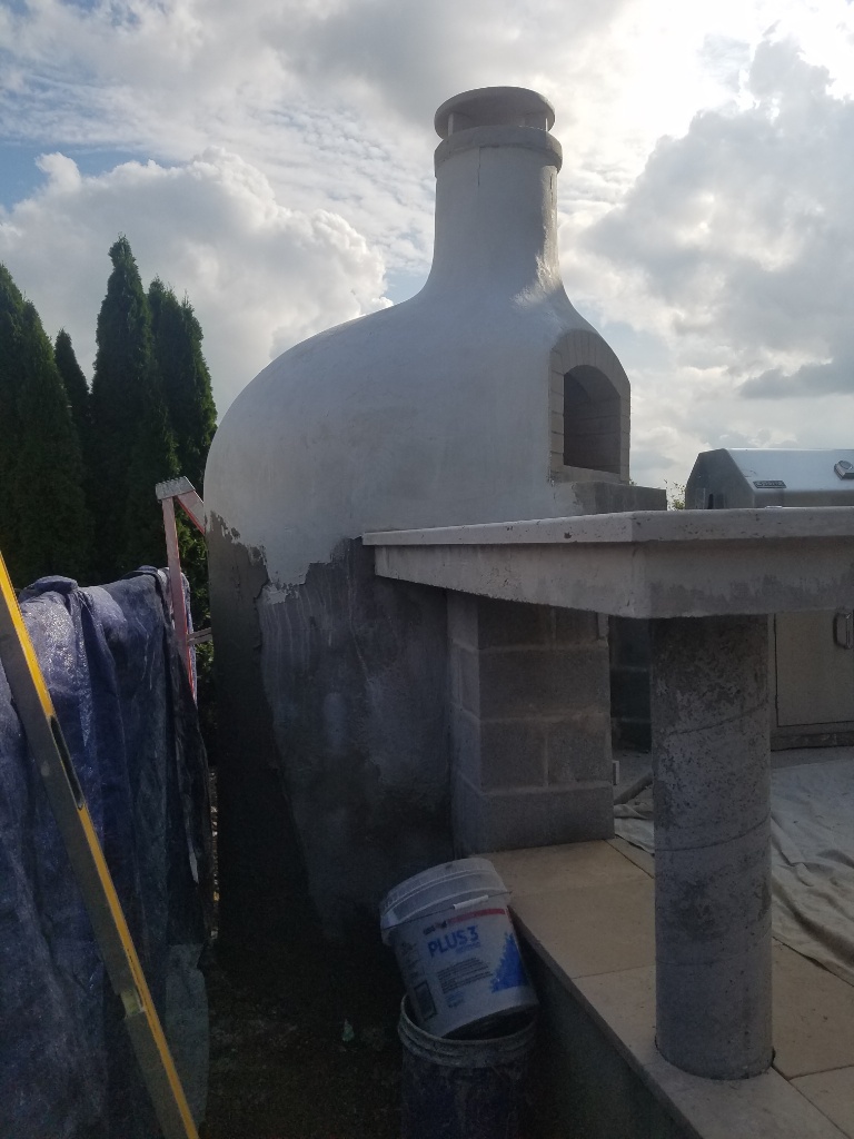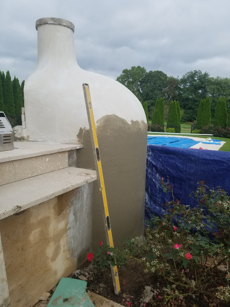 I also learned some important lessons about stucco color being completely dependent on moisture......the oven turned white as it dried so I had to do it a second time. The best I can figure the problem was the base...i loaded it up with latex modifier to make it basically waterproof to keep the insulation dry....so it didn't suck any water out of the top coat....white and Lana freaked and I lost about 4 hours and 2 $50 bags of stucco.