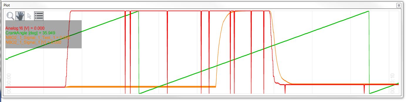 You can see I changed the sensor voltage but the NBO2 reading doesn't change outside the crank angle window I set. in the bottom I turned on some signal smoothing so you see damped transitions. It works.