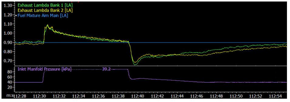 I created routines to calculate the fuel error in grams between the set point and O2 reading in both banks.....this will be needed for closed loop control but once steady state is tuned it also tells me how much fuel must be going onto the port walls during accel or must be coming from the port walls during decel. Graphing Error, MAP, lambda should be the way accel/decel gets tuned.