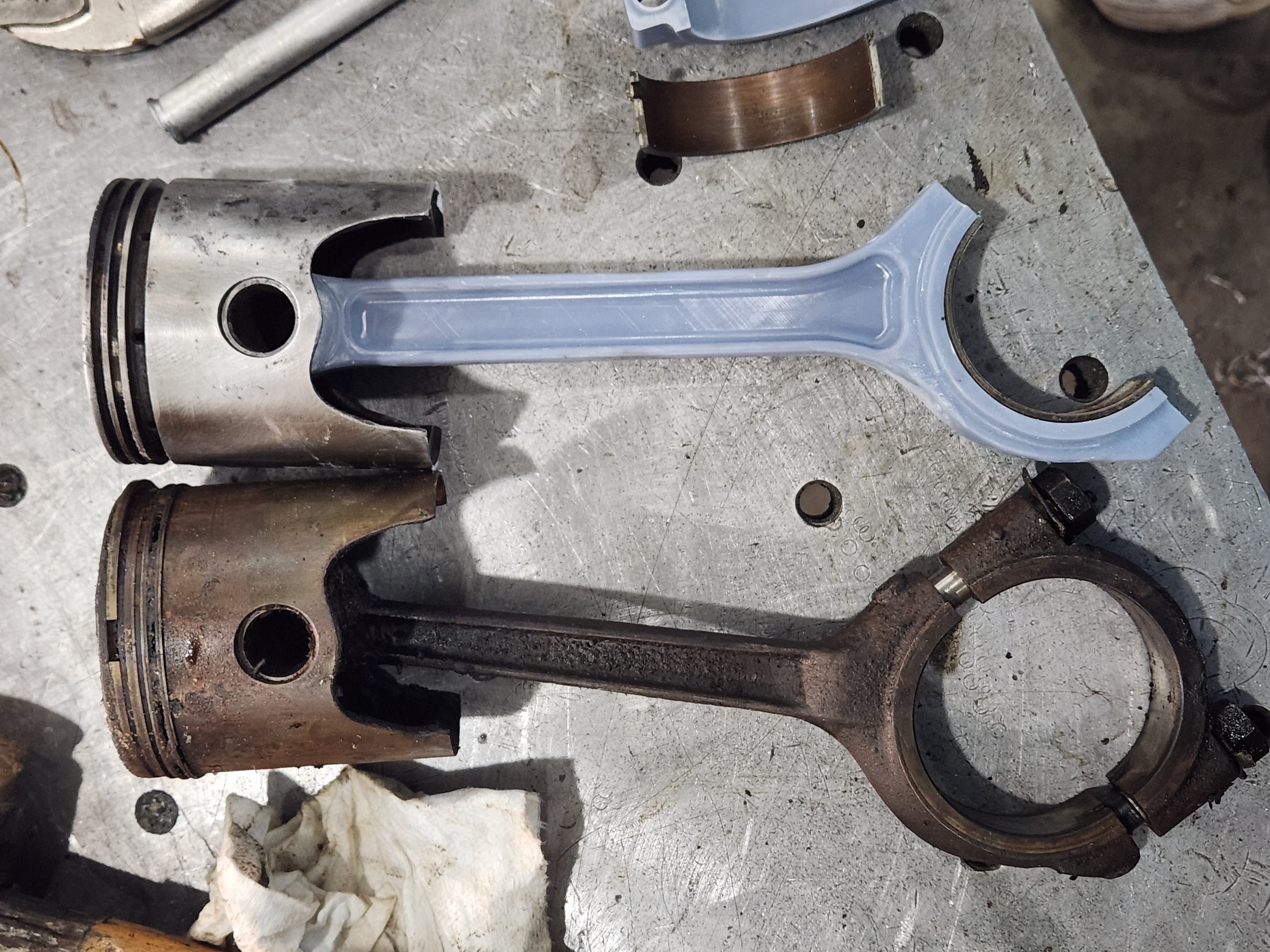 The new rods are 7.75" long, stock is 7.4", so the pin moves up 0.350" in the new piston....that will change the side clearance a LITTLE...5%ish to 60-70 becomes 0.057-0.067ish. ..but yeah, I could print a piston if I take the time to design one.