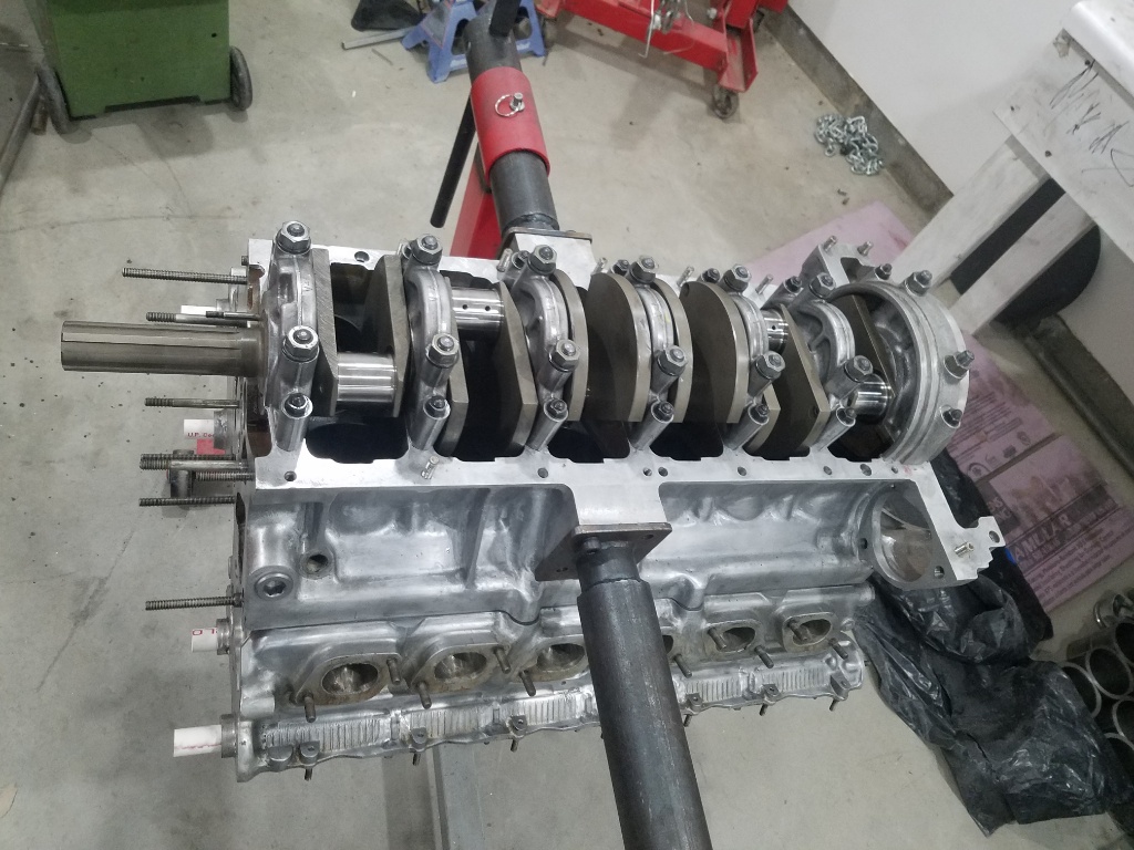 When the Northstar lower crankcase in installed, one bolt on every rod is inaccessible with a stretch gauge. This means I have to install the pistons and stretch the rod bolts BEFORE I install the lower crankcase. This means that the block has to be upside down with the crank just sitting there... and installing pistons in an upside down block blows.