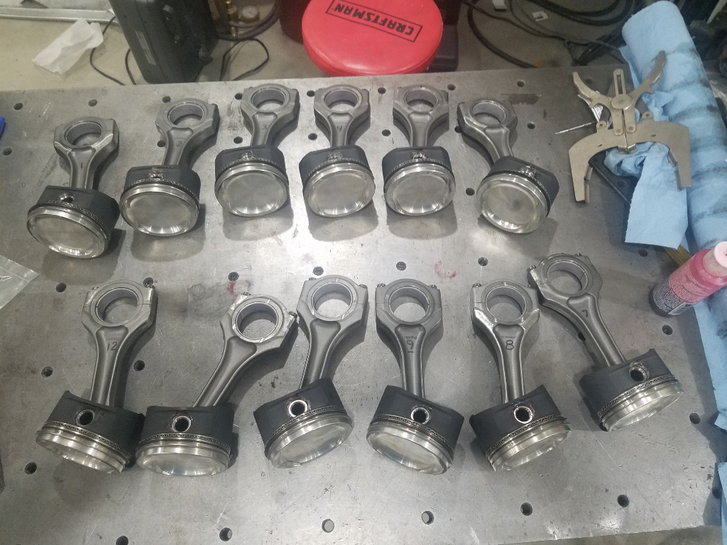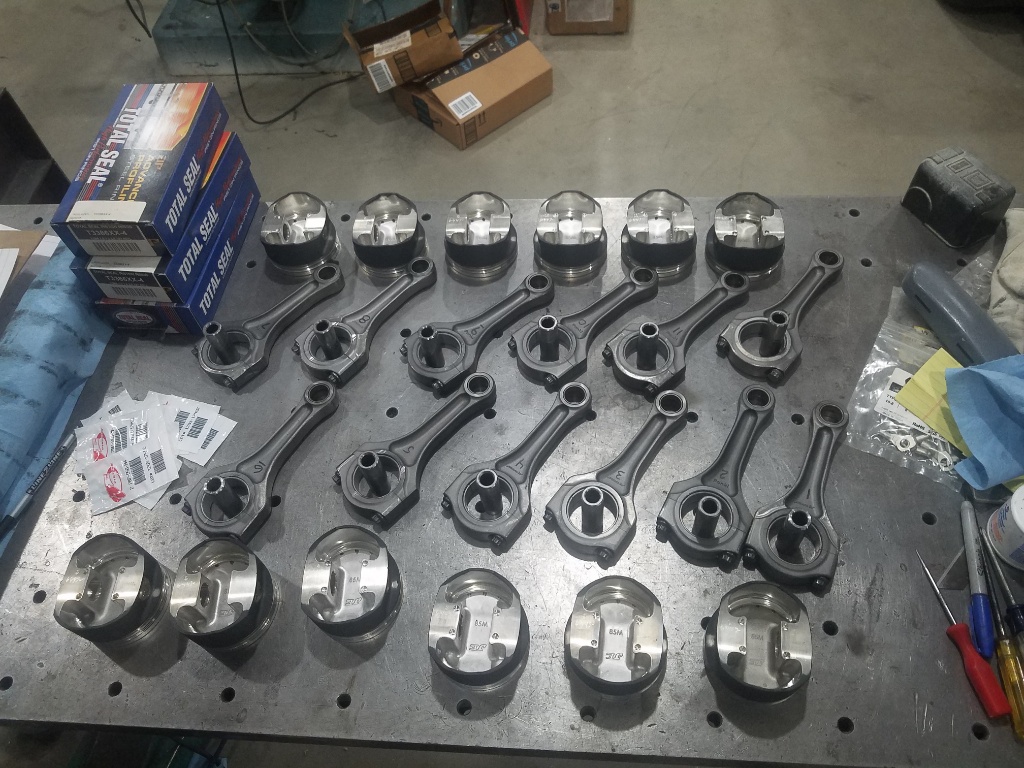 Then pulled out and assembled the pistons and rods which should go in tomorrow