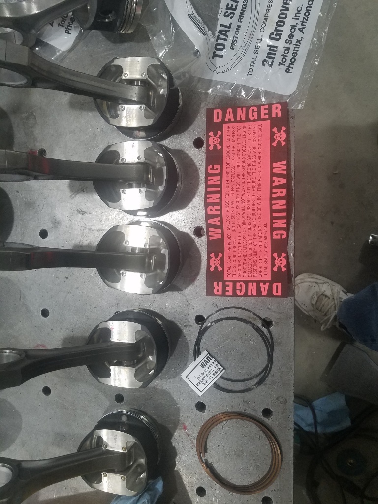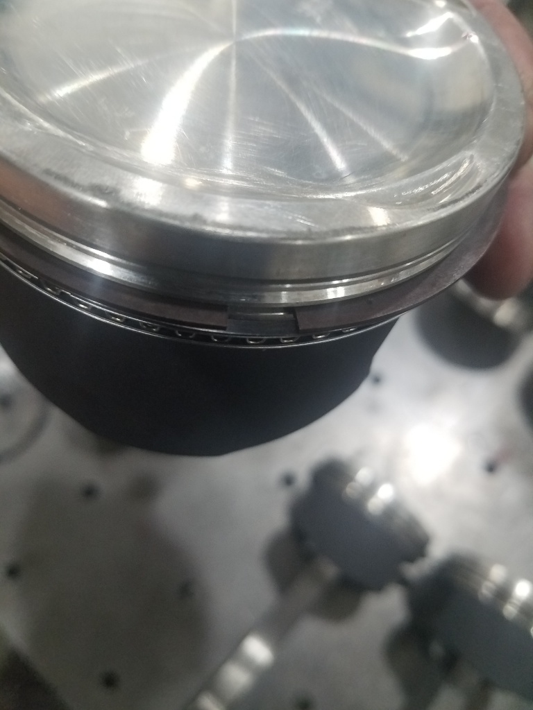 Recall I decided to use gapless rings to help with vacuum and compression at low speed because the ring gaps are larger than I had planned, but nitrous safe so not all bad. for those that have never seen gapless rings, they aren't actually gapless, they put 2 rings in 1 groove with the gaps 180 degrees to each other and the oil film seals them together.