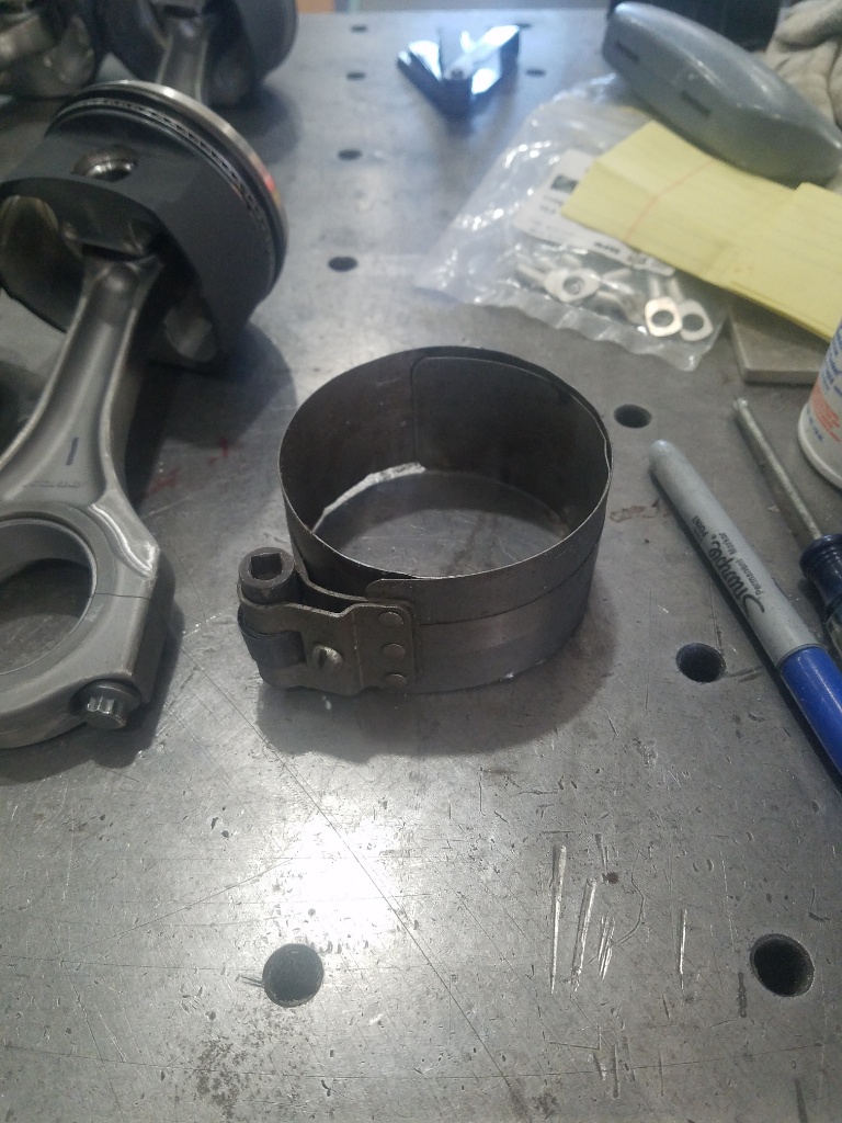 You are the second person to suggest a funnel in the past 8 hours....and had you suggested it 2 days ago I'd have one, but today is piston day and what I have is the same band clamp I've had for I guess 40 + years, I used to use it on my minibike engine....and you'r right, it makes installing pistons a suck job every time but it will be done today rather than take a 2-3 day delay for what is clearly a WAY nicer tool, but if there is ever a next time, now I know.