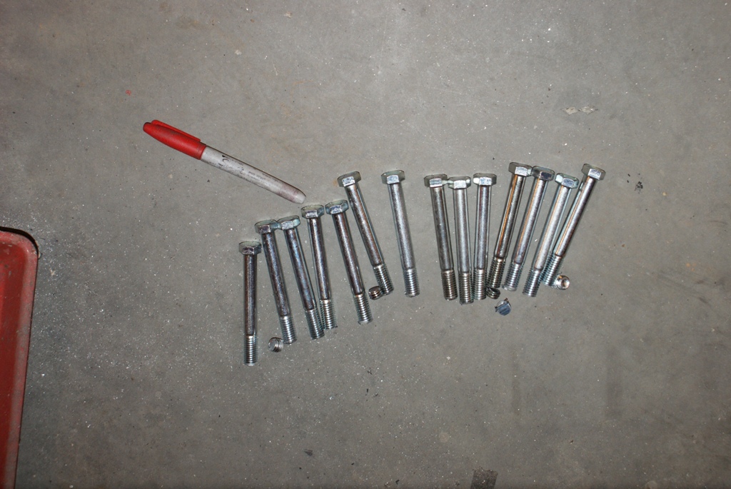 In other news I was in the shop for almost an hour last night. I cut a bunch of bolts to a more useful length and started bolting the seal plates to the 1st head before being called back up stairs :(