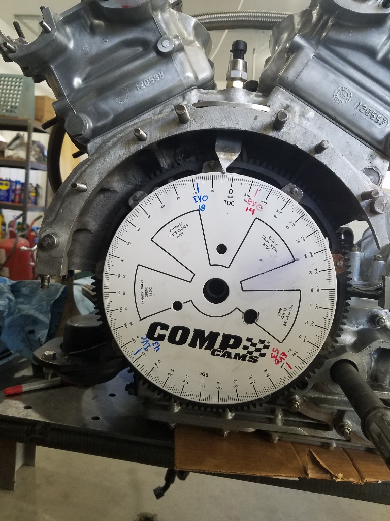 Degree wheel on and marked, blue is intake, red exhaust. My marks don't fall in the printed windows because I have the wheel on the flywheel not the damper so its backwards. This wheel is almost exactly the OD of my trigger pattern on the flywheel which I use for the ECU but also for reading timing so setting it up is as simple as stick it on with the 0 aligned with the TDC mark on the flywheel.