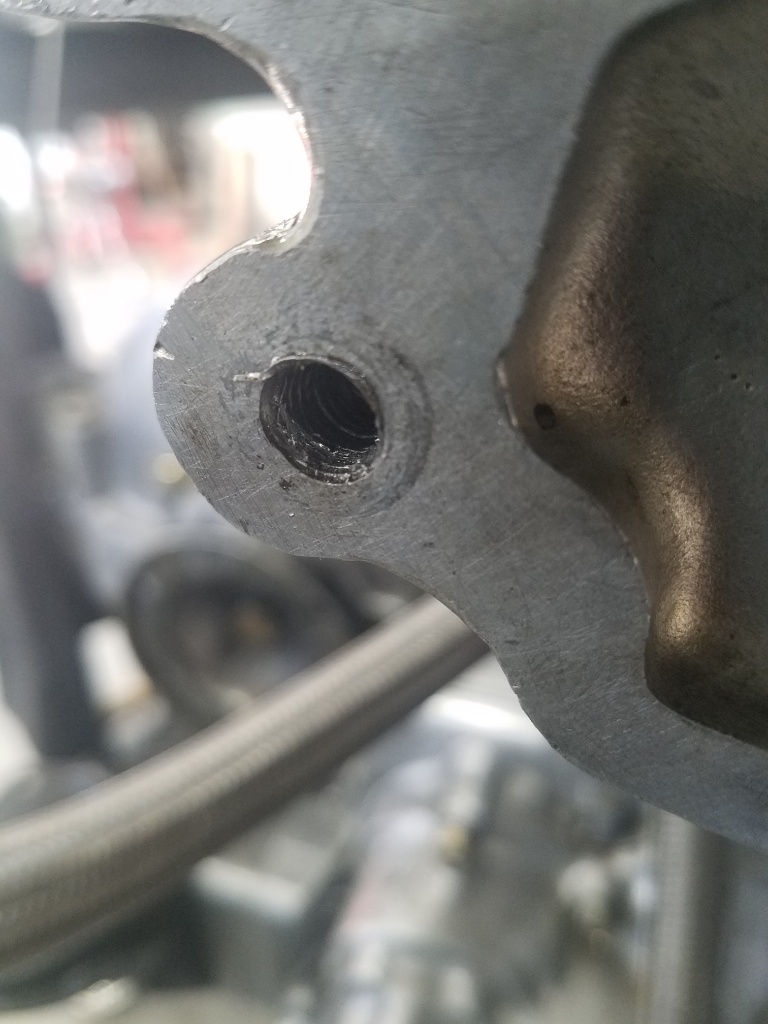 There were still some threads on the bottom so wen I tapped I used a block to keep things straight and was careful to to let the tap follow the existing bottom threads.