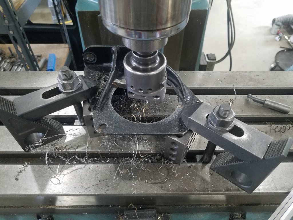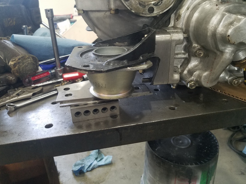 Back to work this weekend.... trying to leave the TV off so out in the shop to have a look at motor mount. First up rebore them from 3.125 to 3.625 so the TR mount fit in.