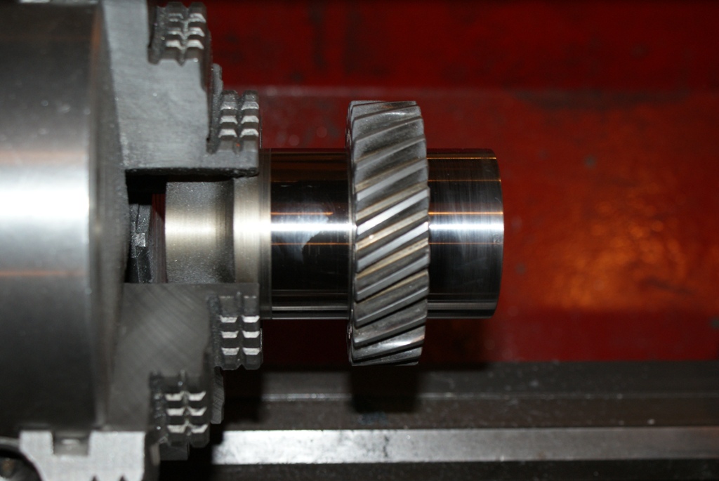 When I made (well.....I designed and mostly a buddy made) the lower gear setup the bearing surfaces were left a little oversize in case it changed shape/size during heat-treat. Tonight's project was to get the no very hard part to size.....the chips were actually coming off on fire! I did my best to get a picture.