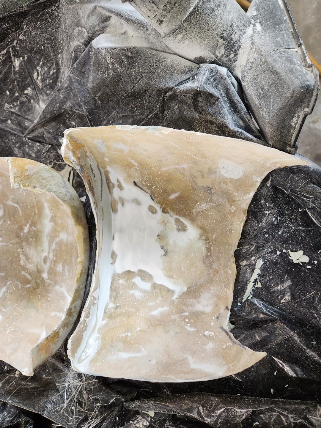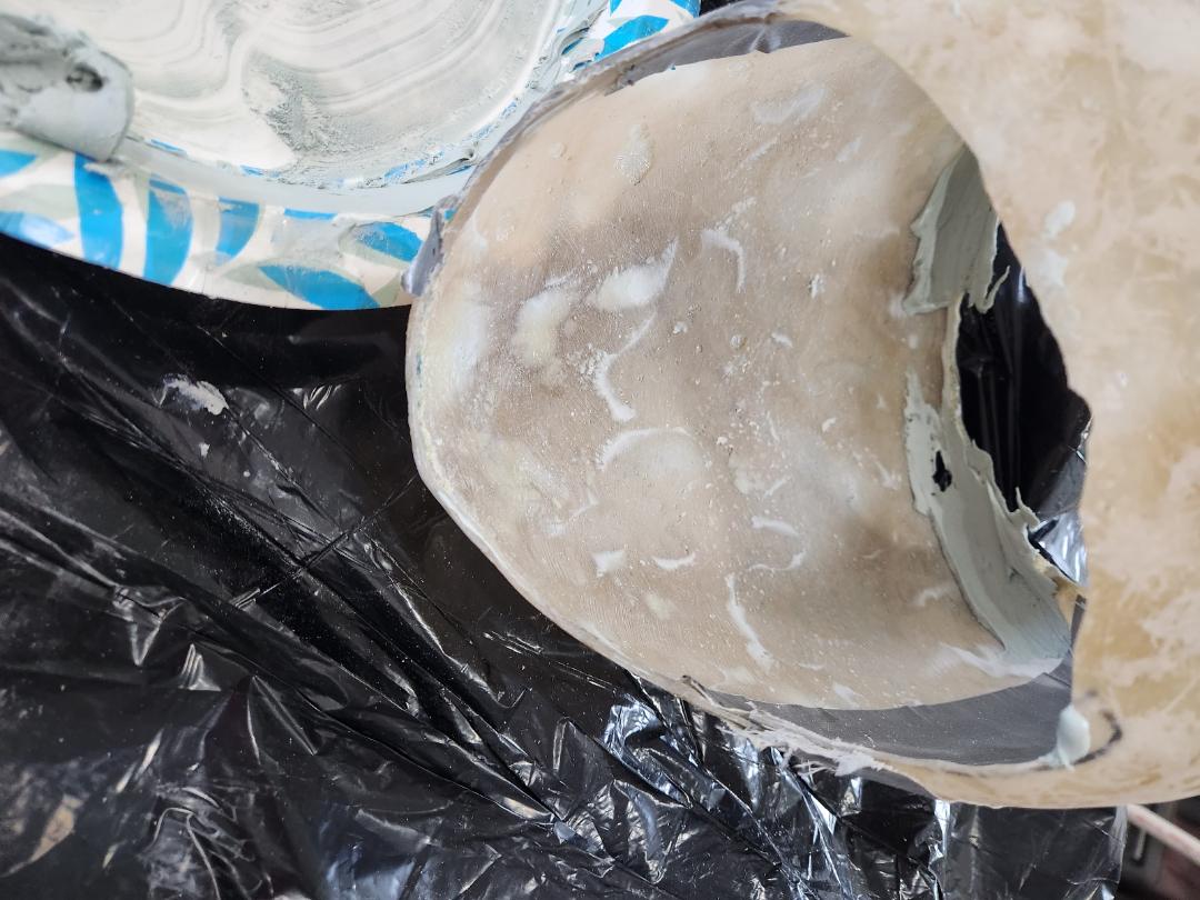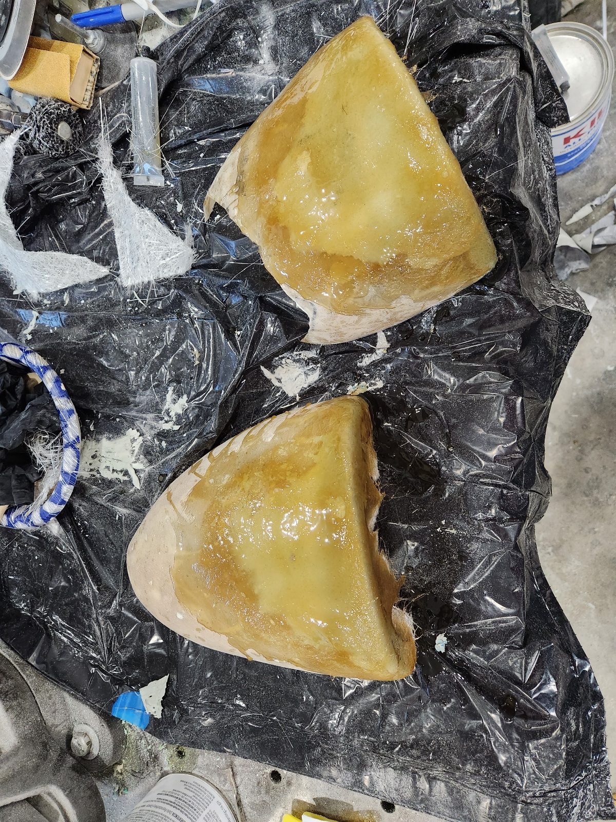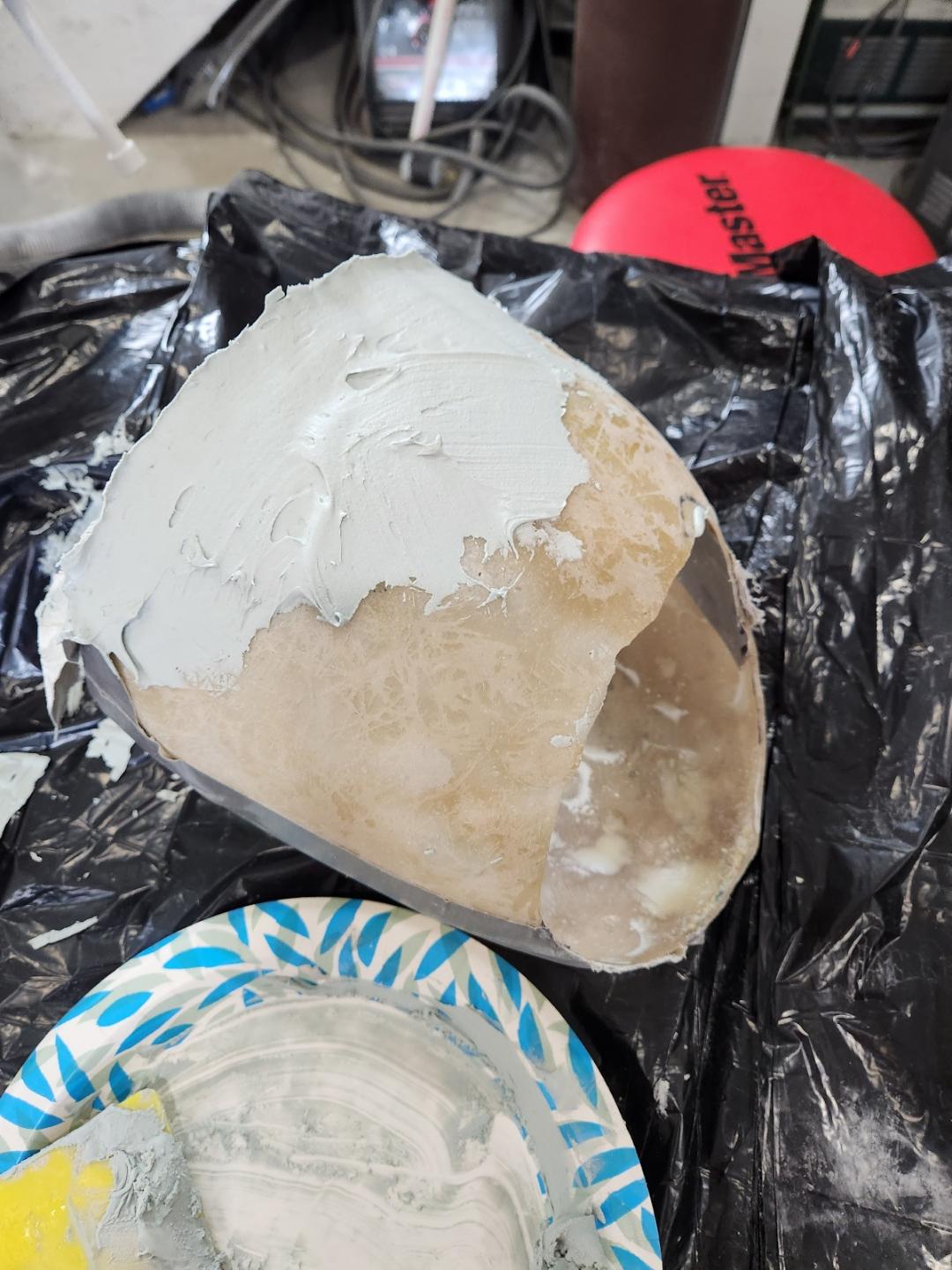 I realized the whole trying to flex it and coat the inside was just plain silly so what I did was trim the halves until they fit then built up the outside where I could now that it was trimmed to clear the tiny spots.