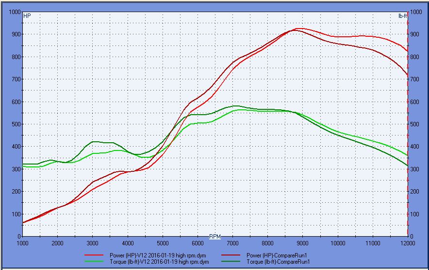 interesting, I was trying to recall if it was 11" or 11.5" fired up and check'd and I also get better peak for 11". Though for Nicks new 4L and ITB's the sweet spot is 13.5", nets peak 610hp @ 10.5k rpm.