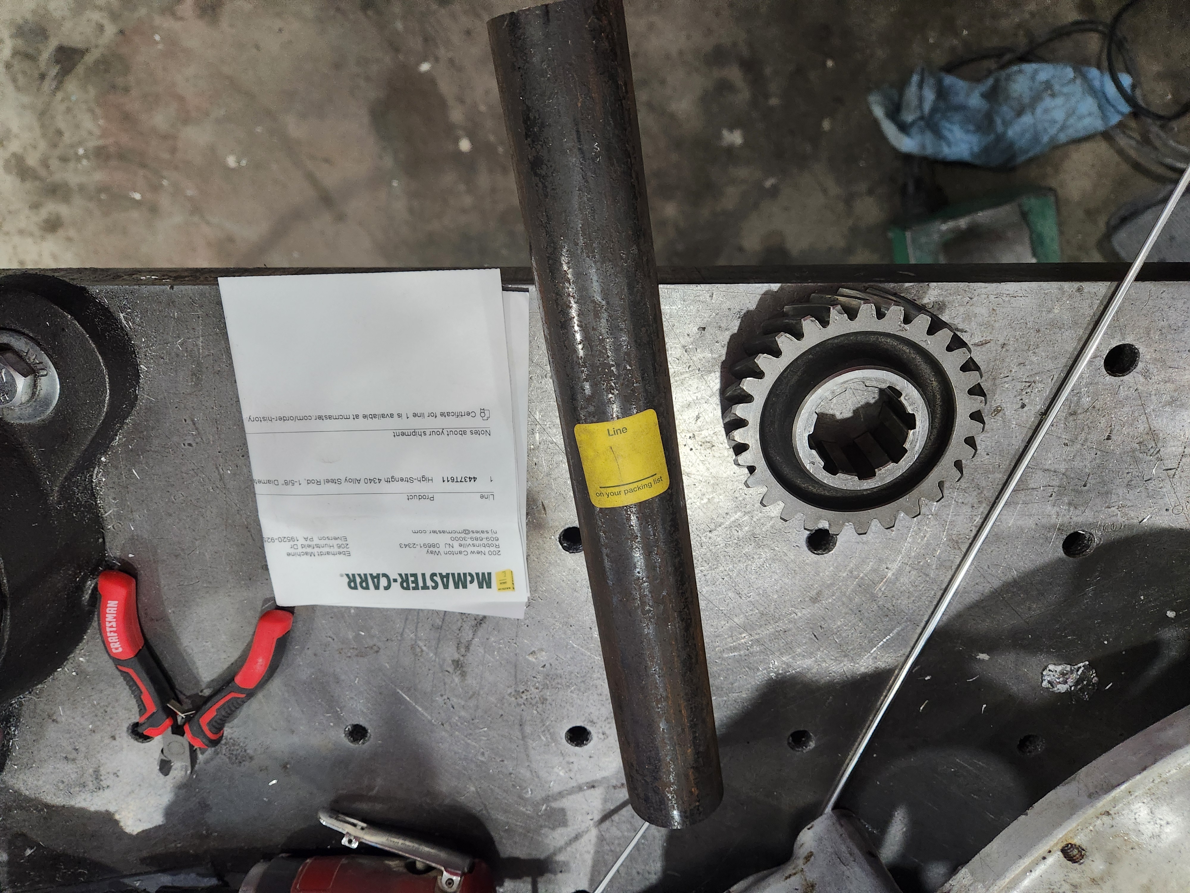 The steel for the shaft arrived. I've already broke enough stuff for 1 day so I'll maybe get going on the shaft tomorrow, although I don't think I have the nut to measure so I can't finish the design on that end and I'm honestly don't have much more than a vague concept of how I'm going to cut the internal spline on the other end....I guess I'll play with that next.