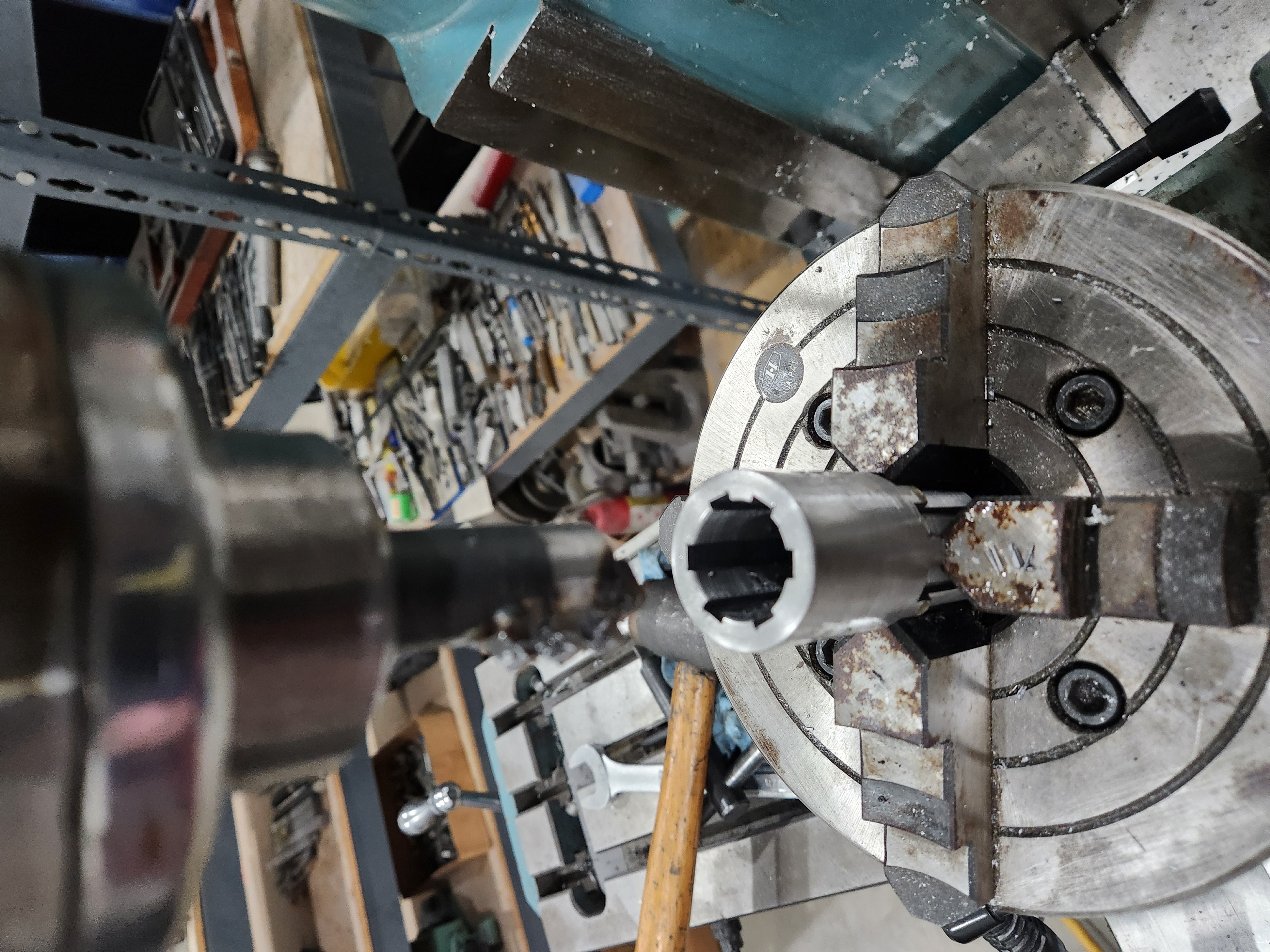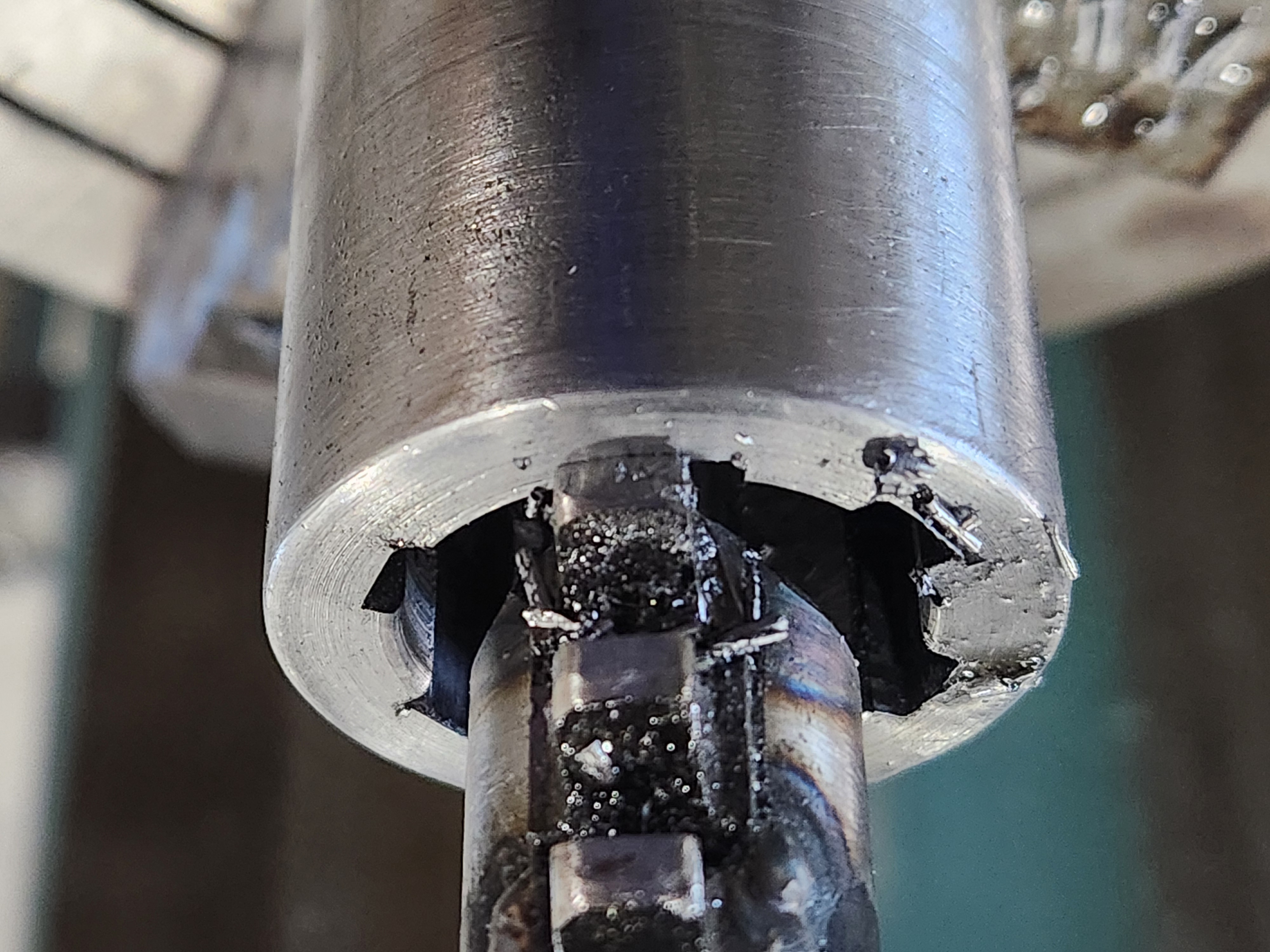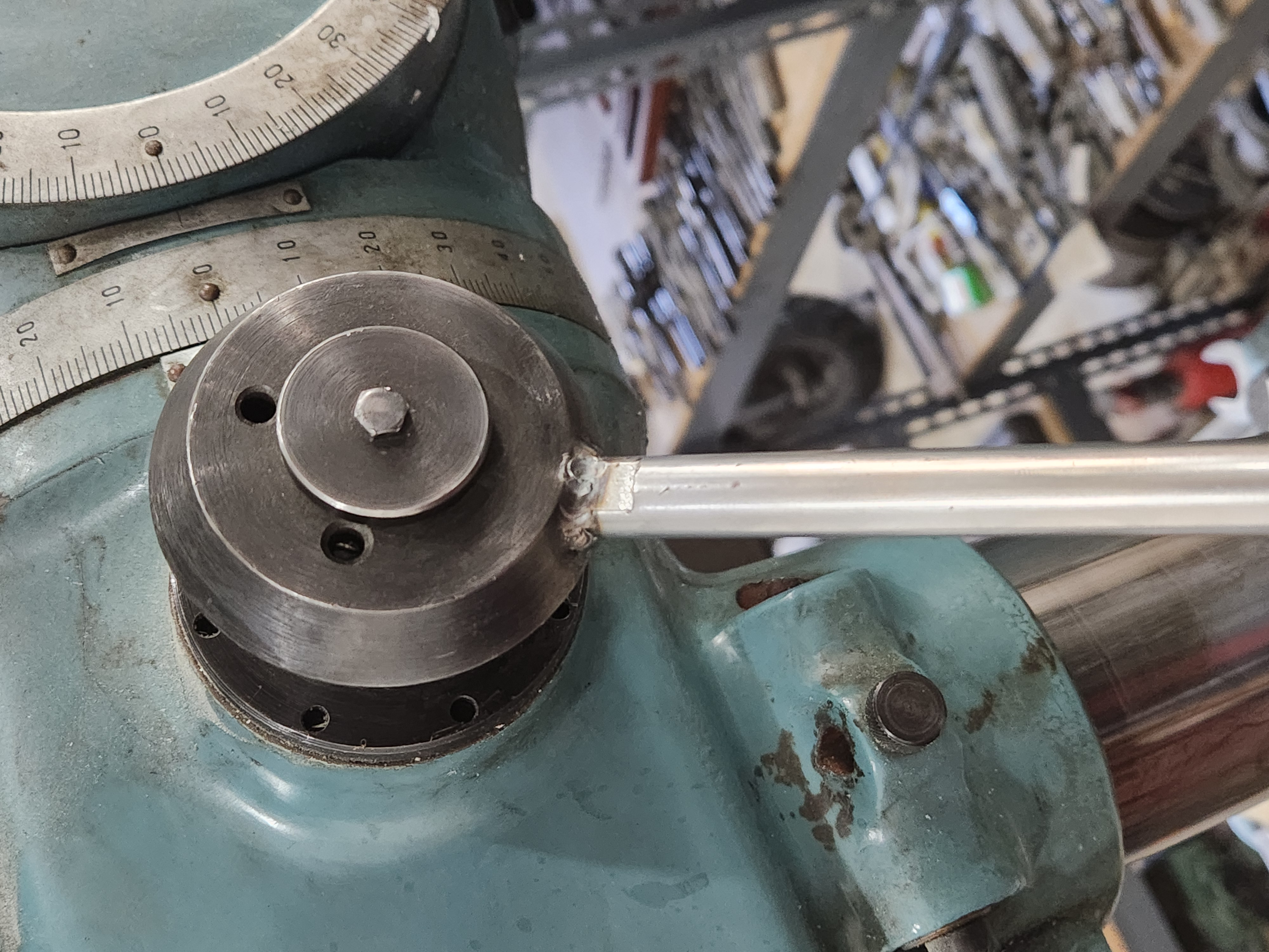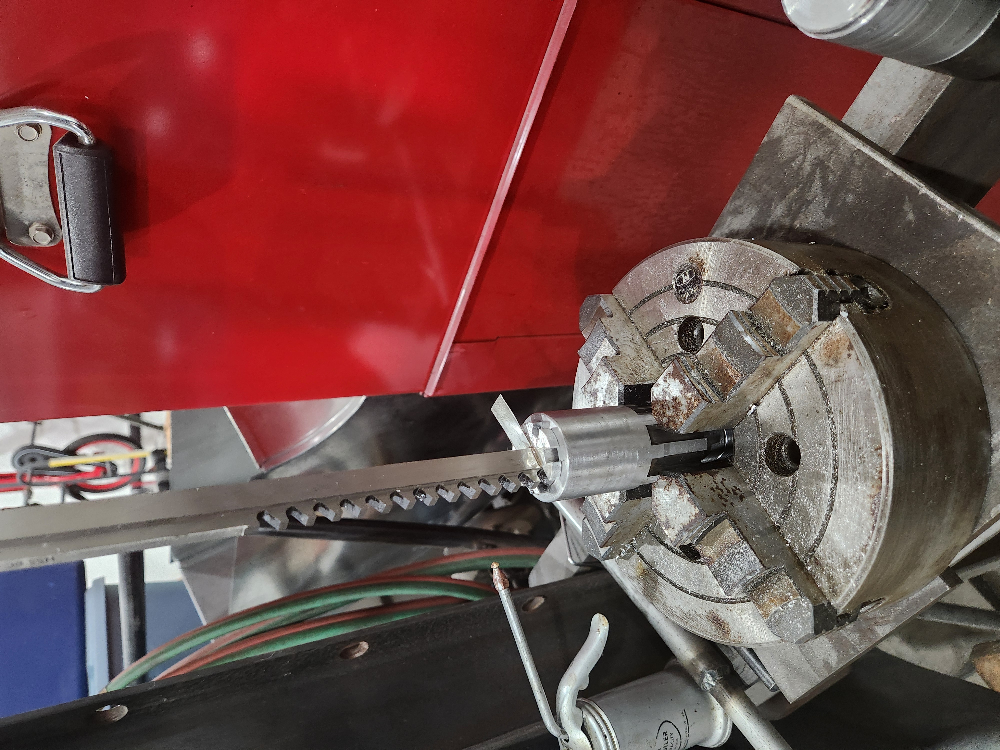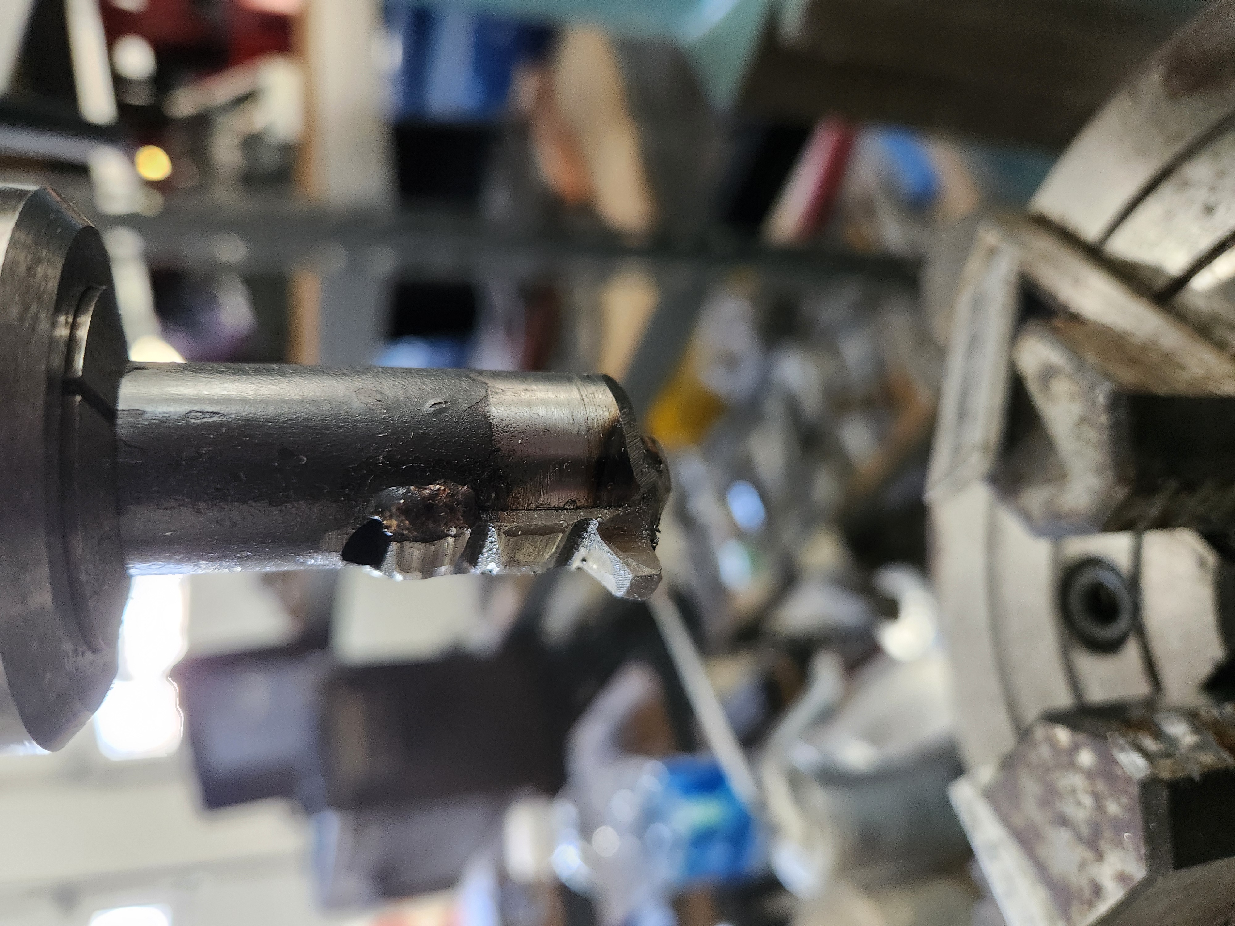 So tonight I took a section of the broach and welded it to an shaft. I could have used a tool bit but since I'd already scrapped the broach this seems easier