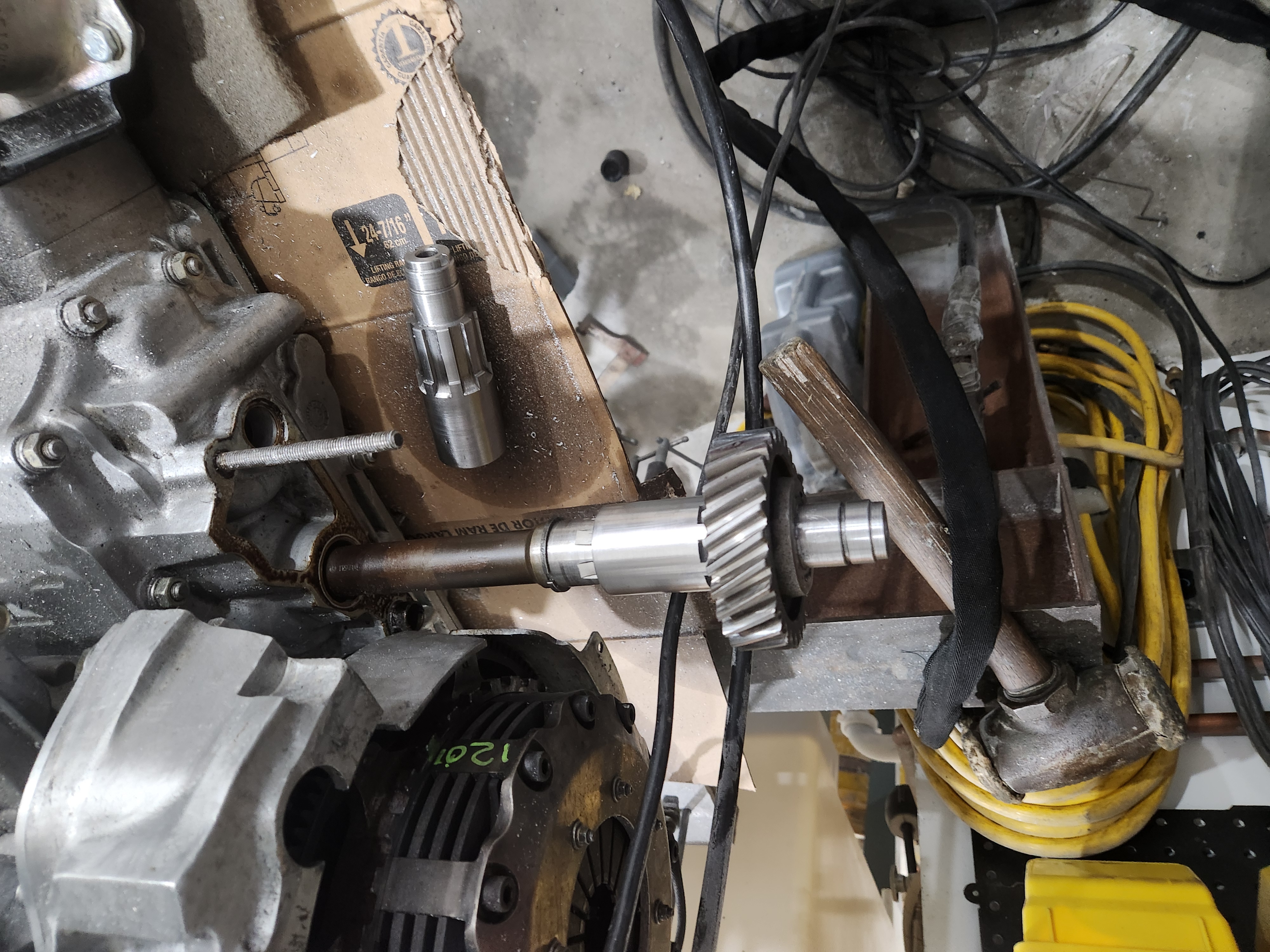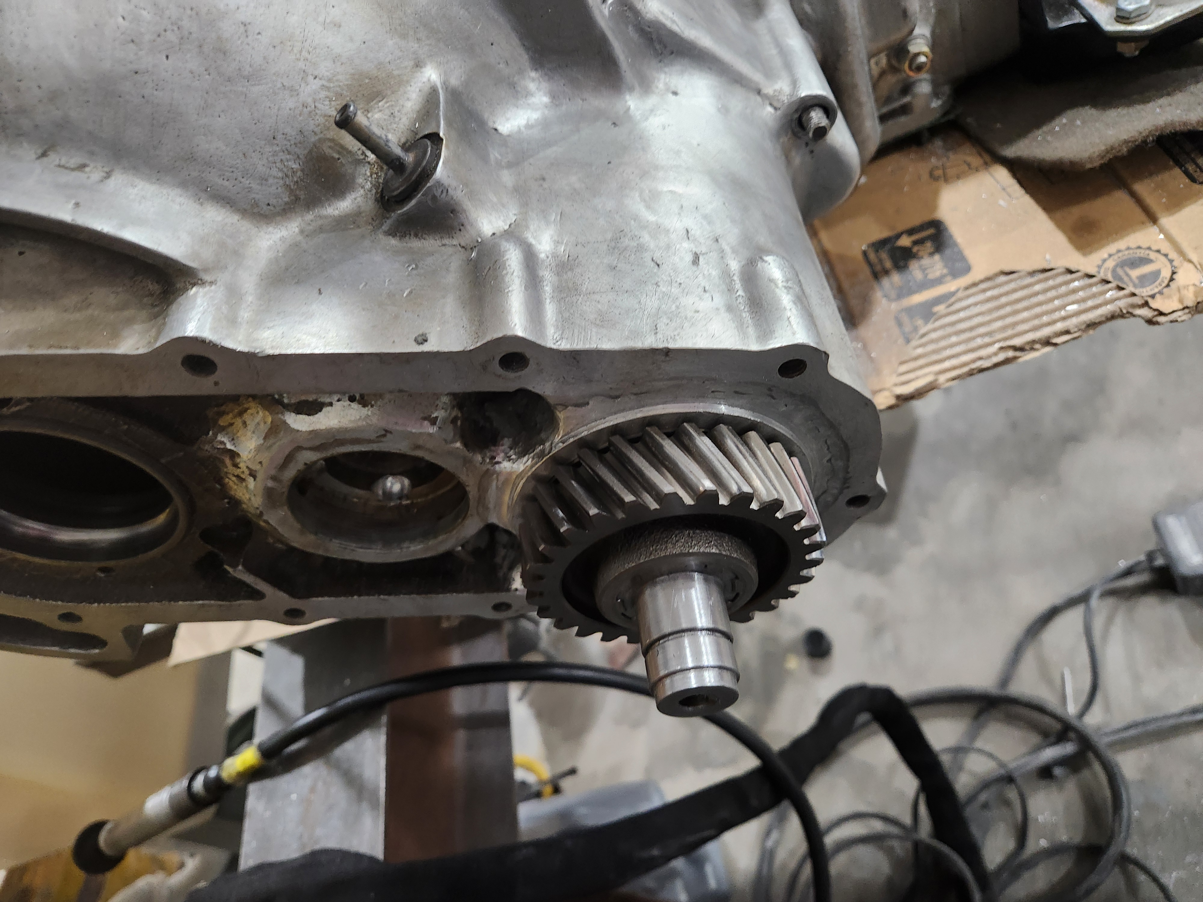 Back on track. The gear fits the shaft, the shaft fits the trans shaft, the gear ends up in the drop gear case where it belongs.