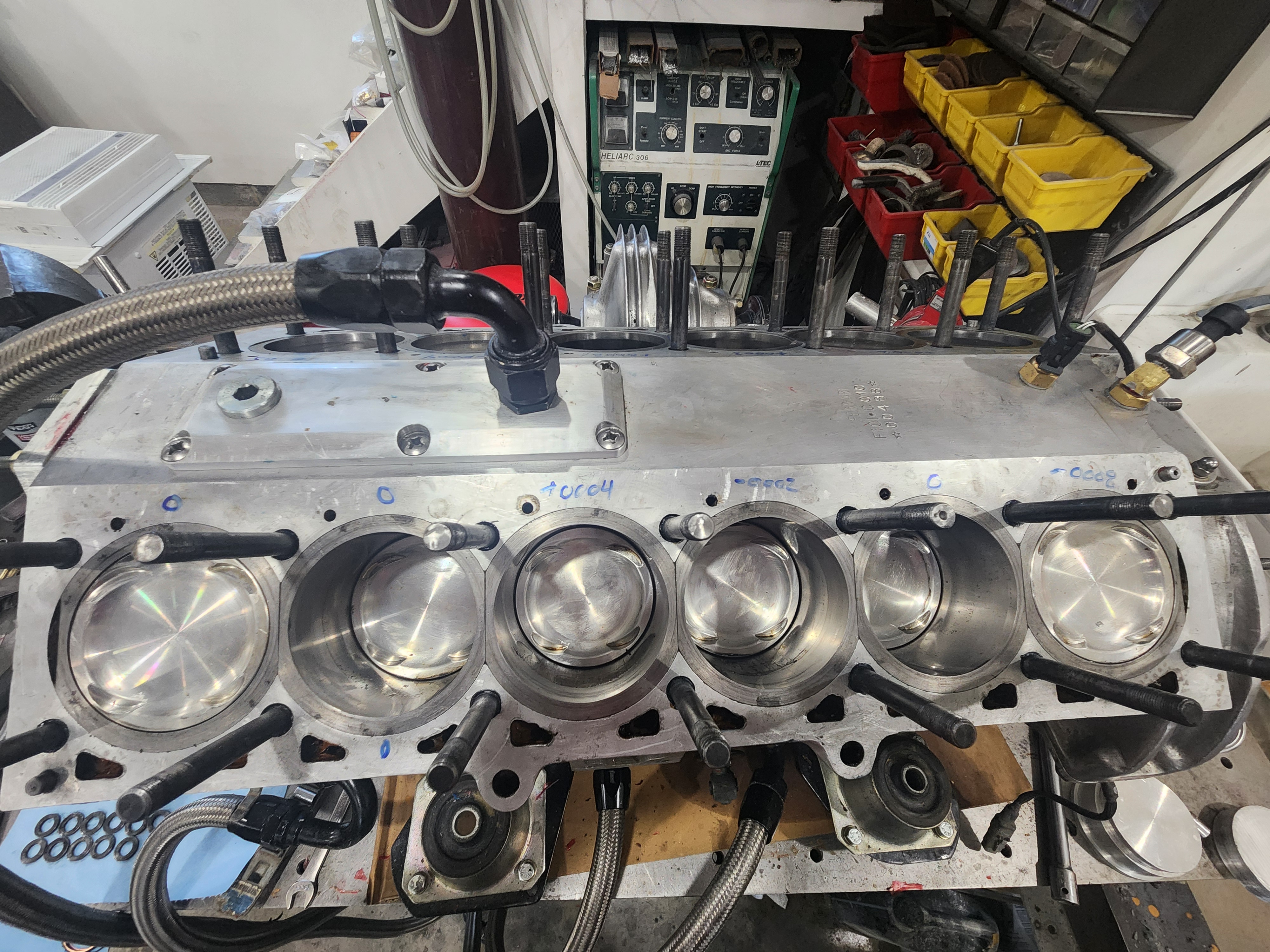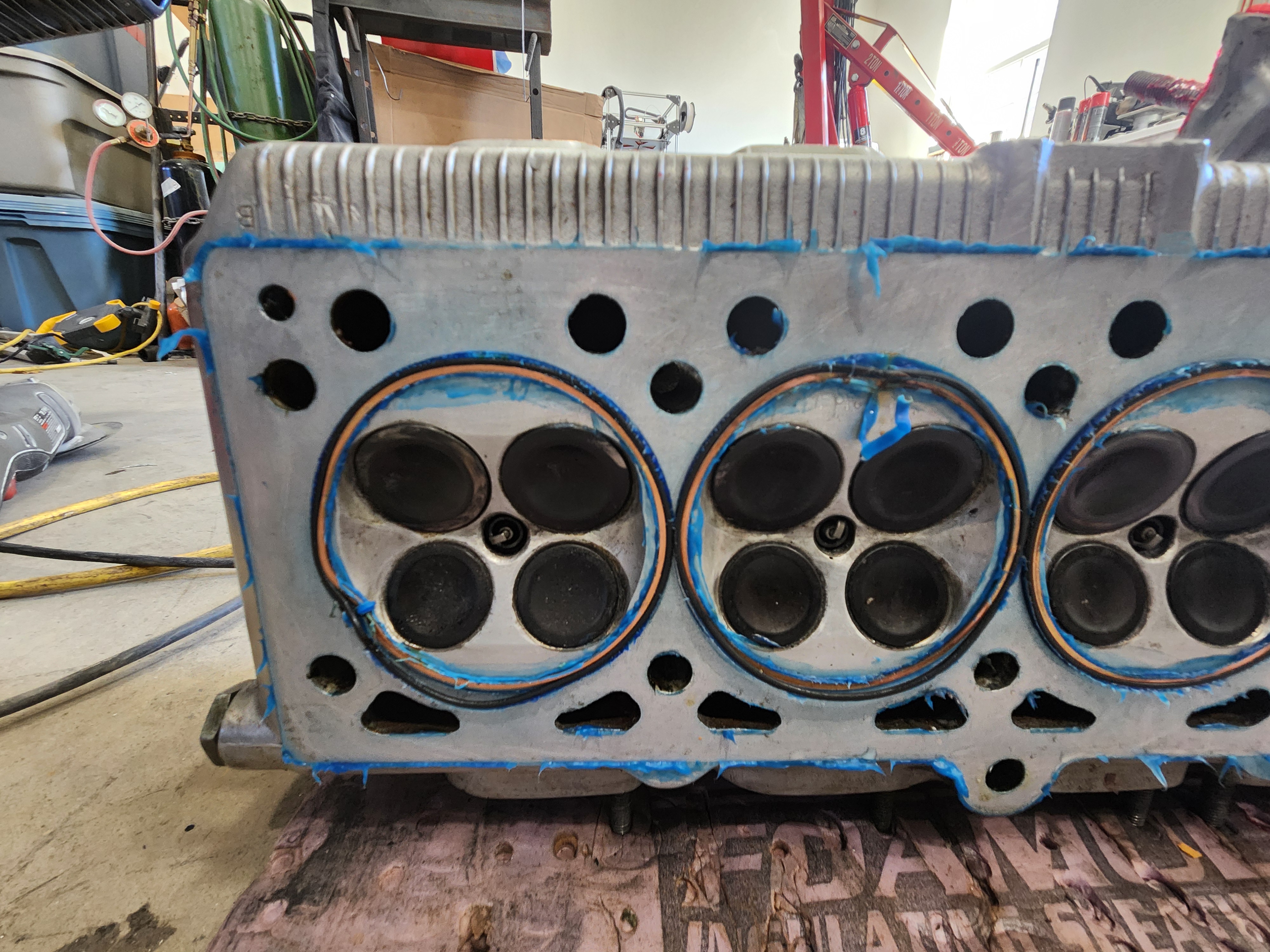 In general I trust a lot of sealing trust to sealant, engine to trans, the intakes to the heads and such so sealant deosn't scare me. But while I was stacking 20k+lbs of patio stones I don't need but my wife got for a great price the last couple days it occurred to me that in my new design there is nothing supporting the o-rings between the cylinders so when I get it to pass the bench test and installed in the car, it will blow out the orings when it starts. Then I though I could make the copper rings taller and yield them on assembly to mostly seal, but then the hoop stress will be 6-8 times their yield stress so getting this setup to pass a bench leak test is a pointless exercise I think. I'm not yet sure what it the3 next attempt will be.