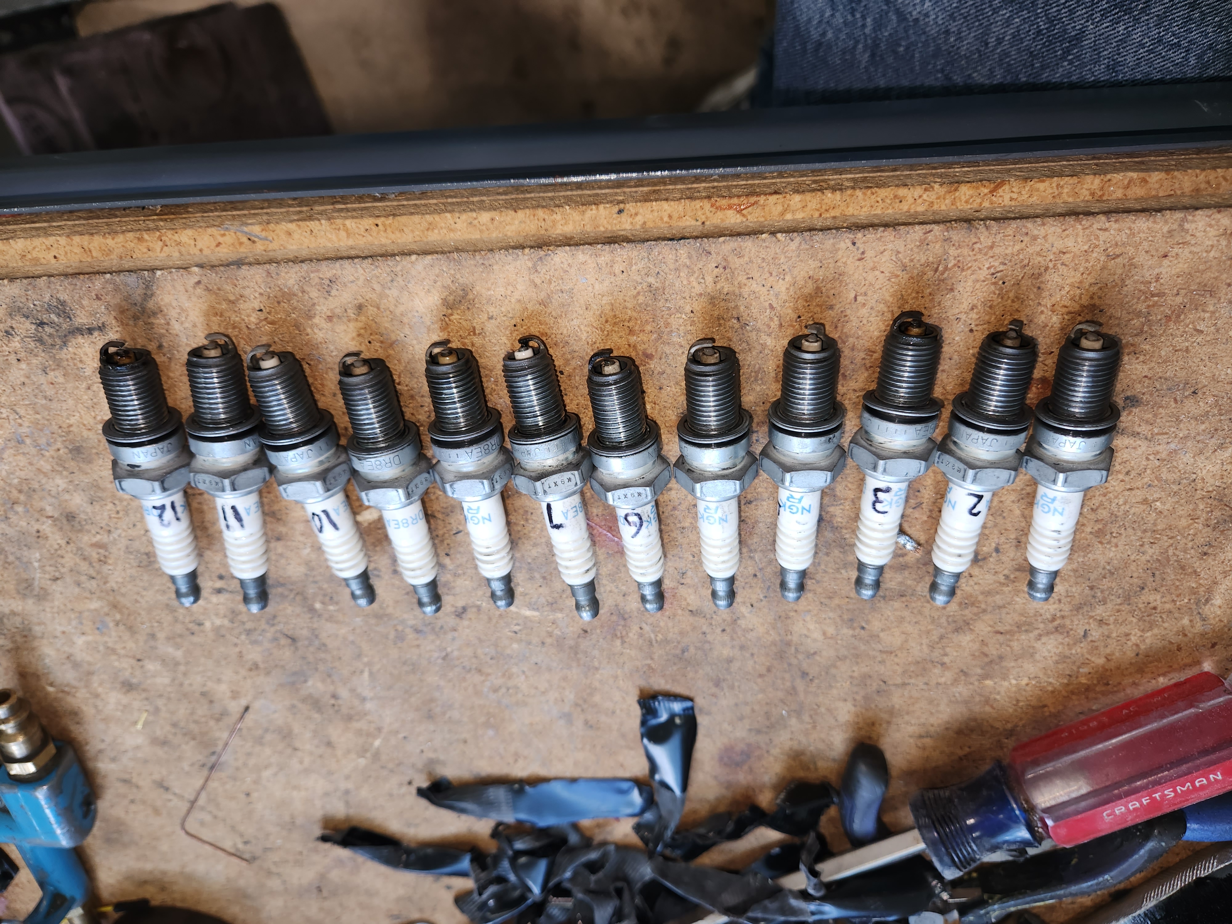Today was clean the plug...very black today so clearly I was going the wrong way after changing the stoic value...oops. And lots of variation with the MAP trim off and me messing with the sync by ear...another oops I guess. On a good note, 1, 3, 12 all dry, 6 & 7 just damp so I'm guessing 1 more run section and the heads will be sealed...hopefully