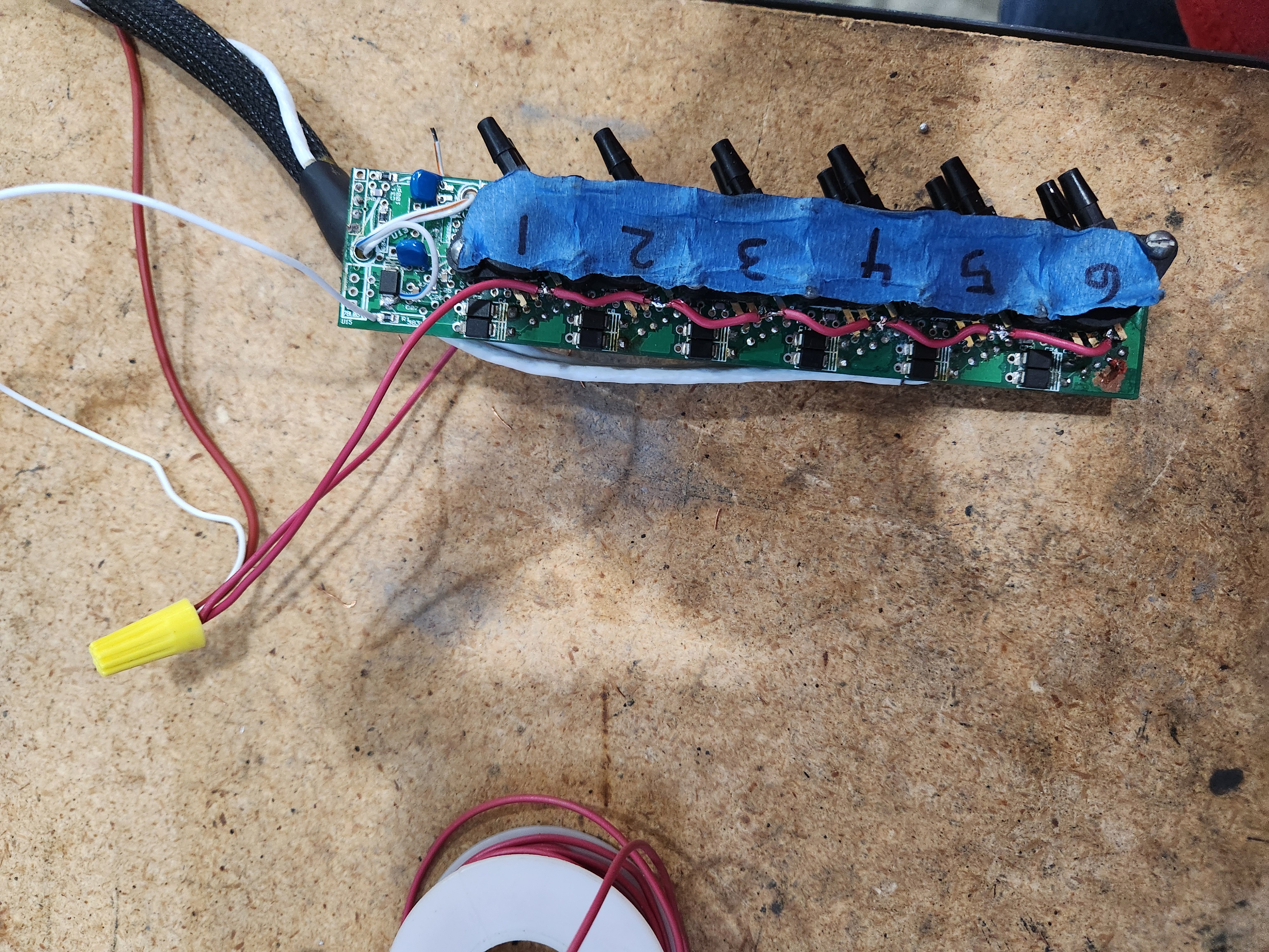 But something made me dig a bit more.....and there was no 5V on the 5V buss and I was seeing about 138Ohm to ground when it should be a couple kohms. I removed the old 10V power supply I was replacing and the output conditioning stuff that never worked right so I don't use...no change. The sensors are the only other things on the buss so I clipped the sensor 5V pins one by one, no change so I guess the corrosion in the board that killed the 5V to sensor 7 has spread. I made a new 5V buss with jumper wires "for now" and the board is working again other than the 10V power supply coming tomorrow.