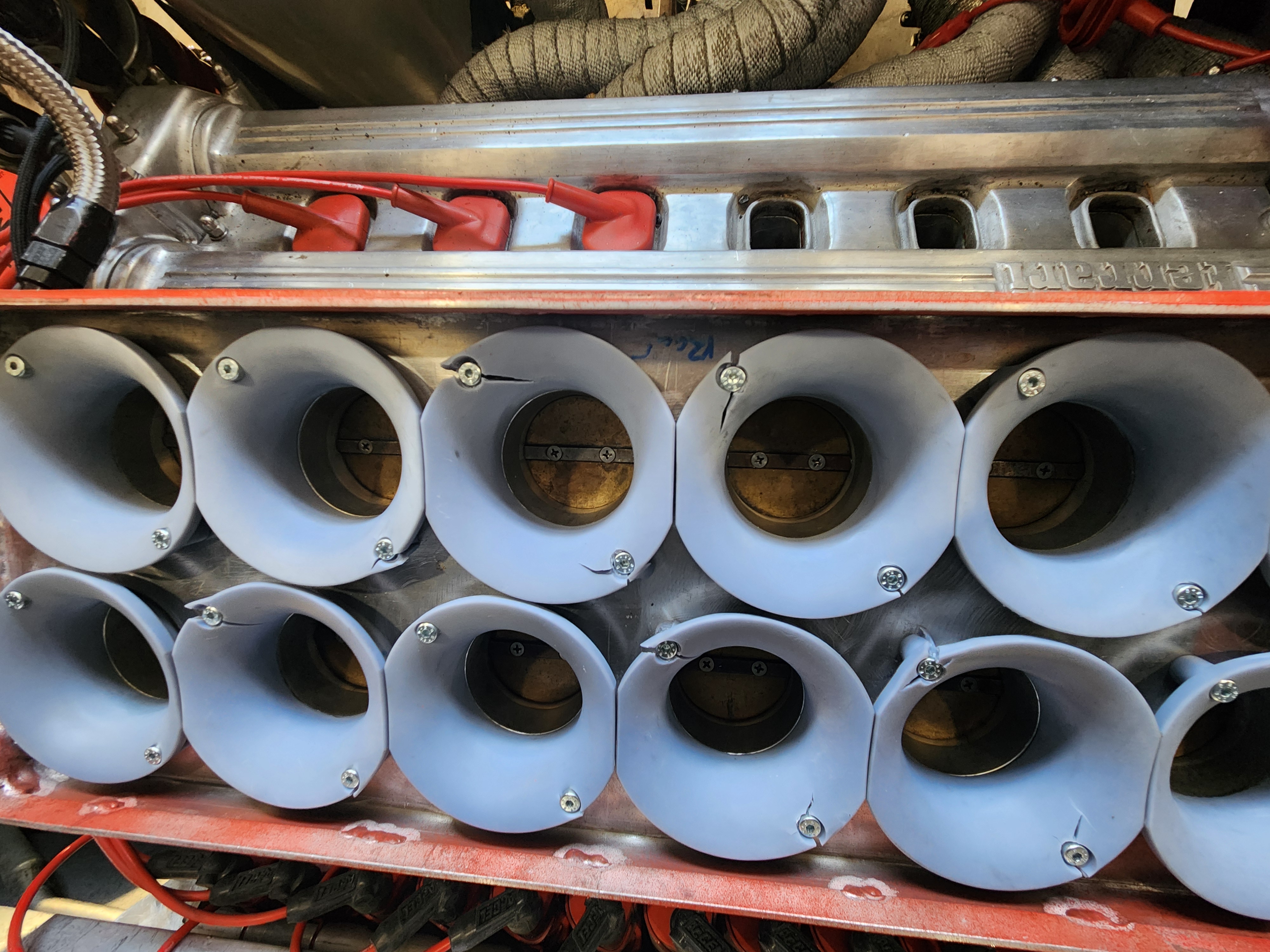 Most all the velocity stacks broke....its like the screws tightened themselves while it was running.