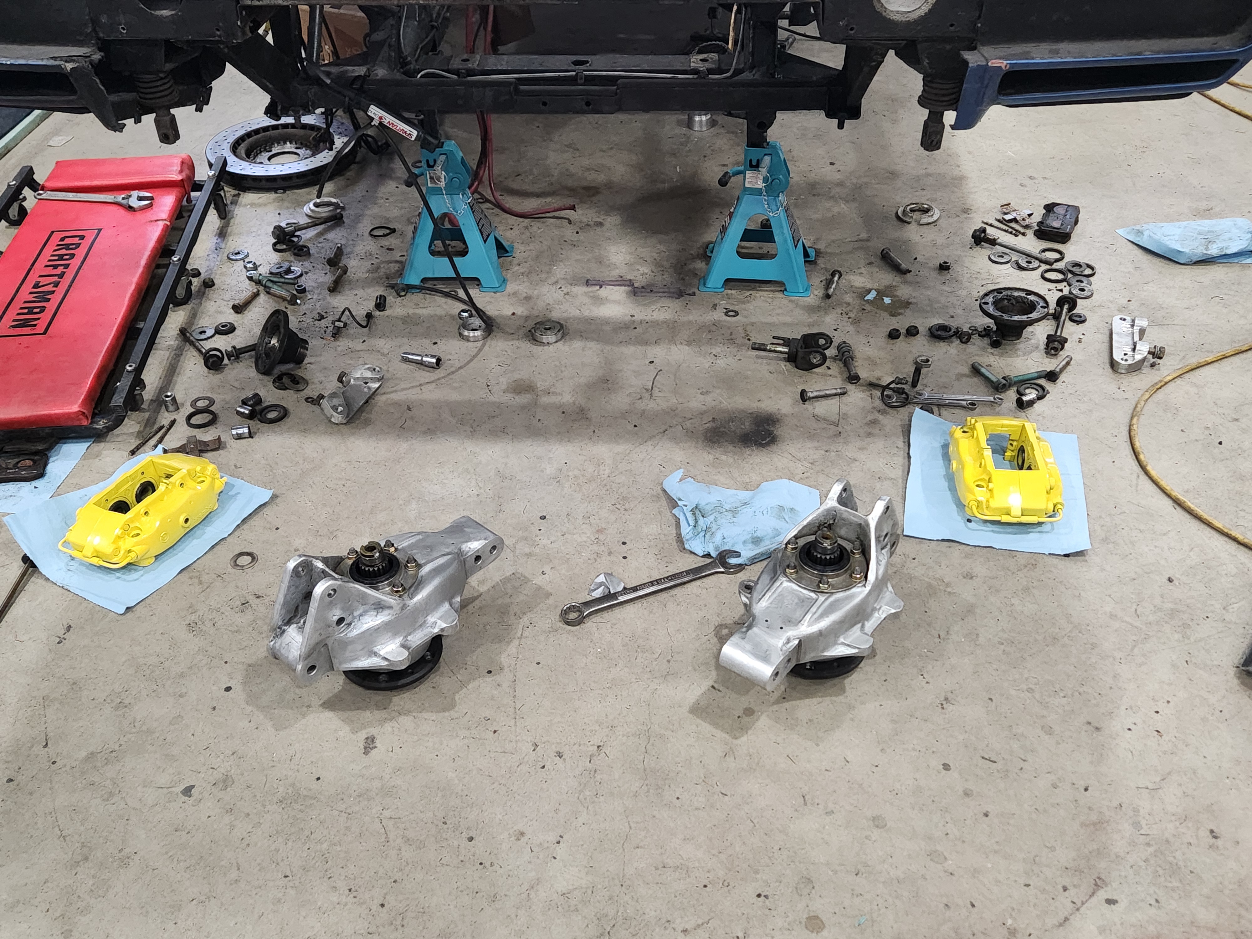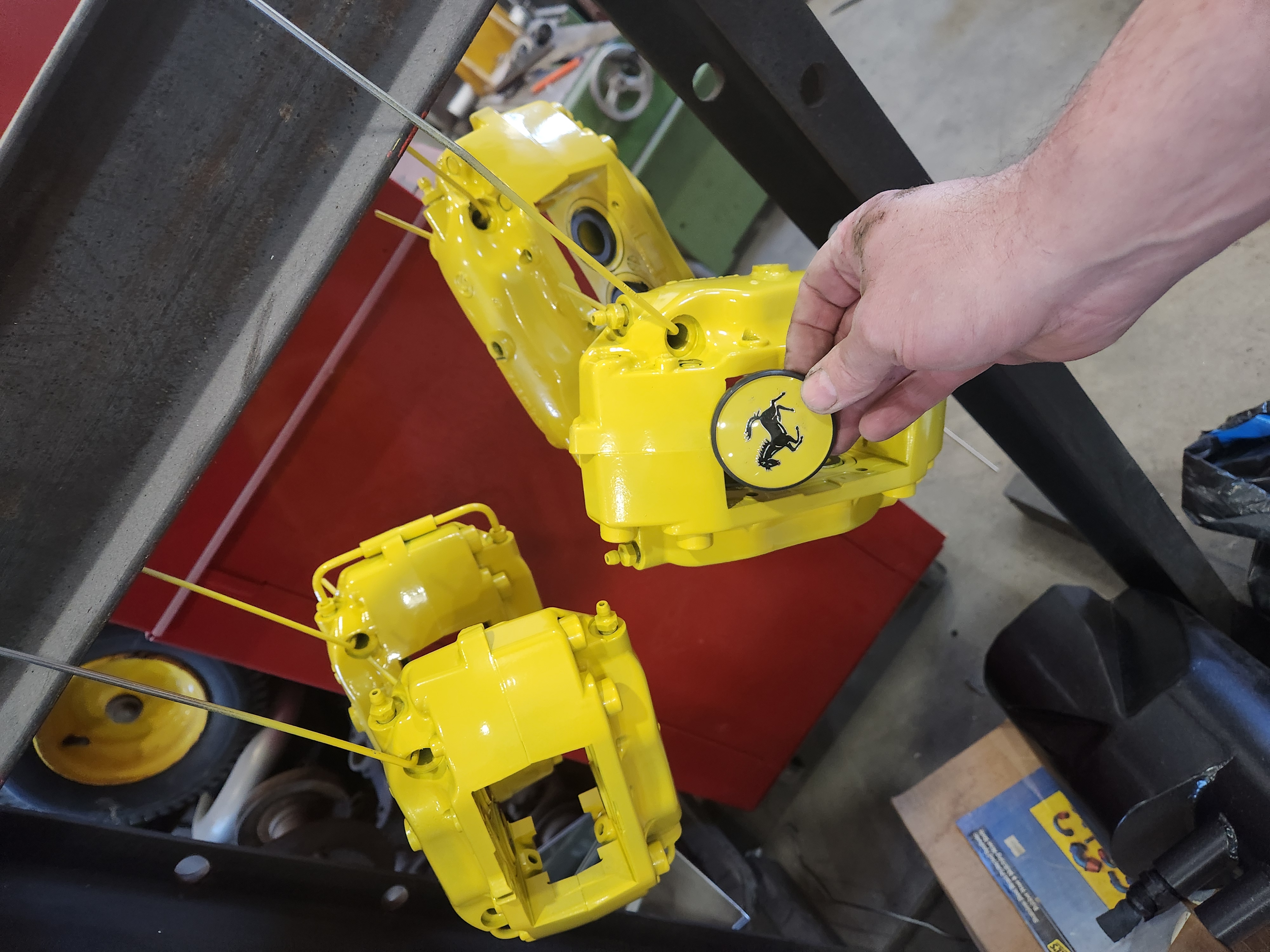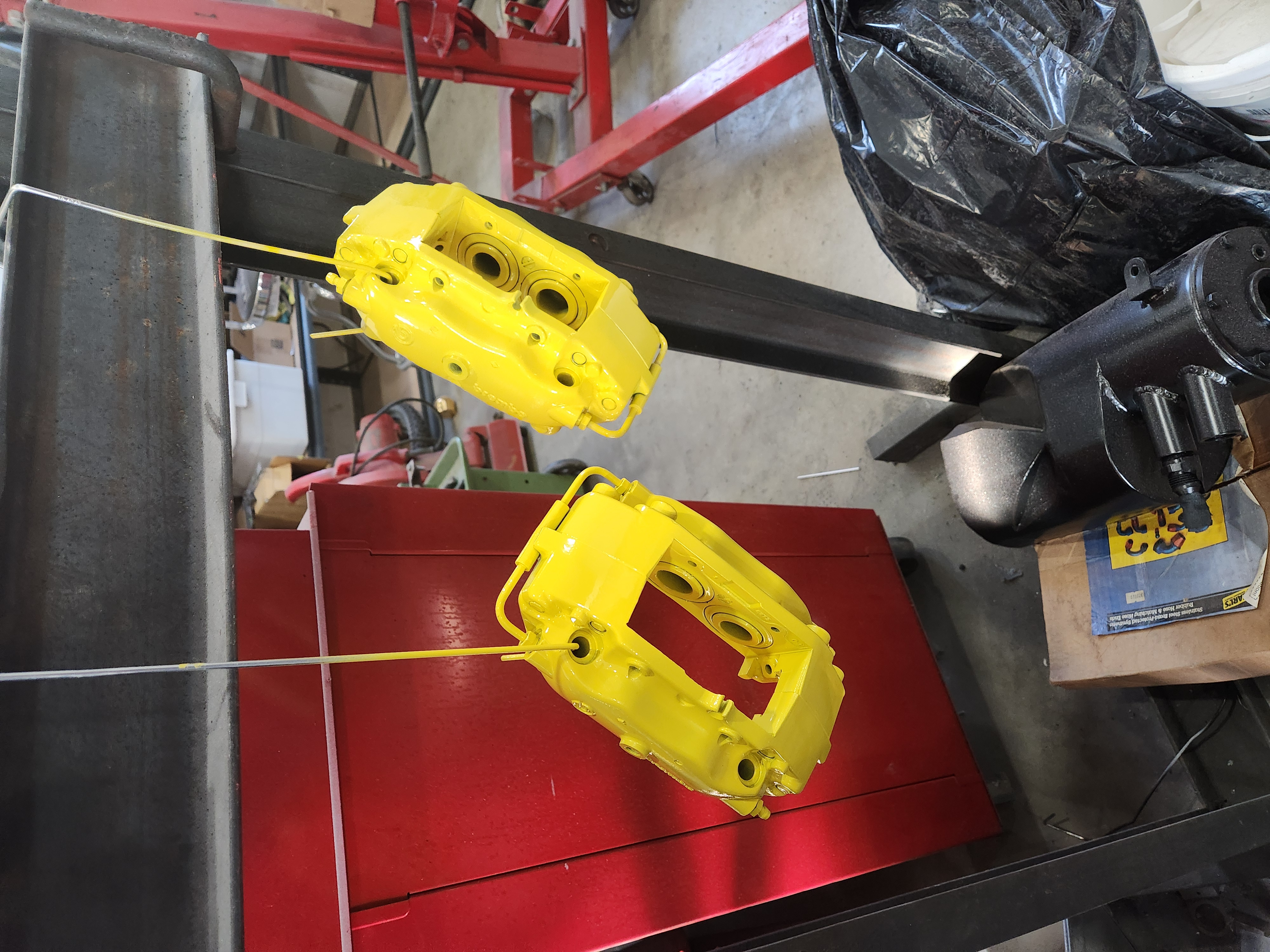All four calipers painted....not sure I love the shape of yellow but changing it is a next year problem at this point and who knows maybe be they I will love it.