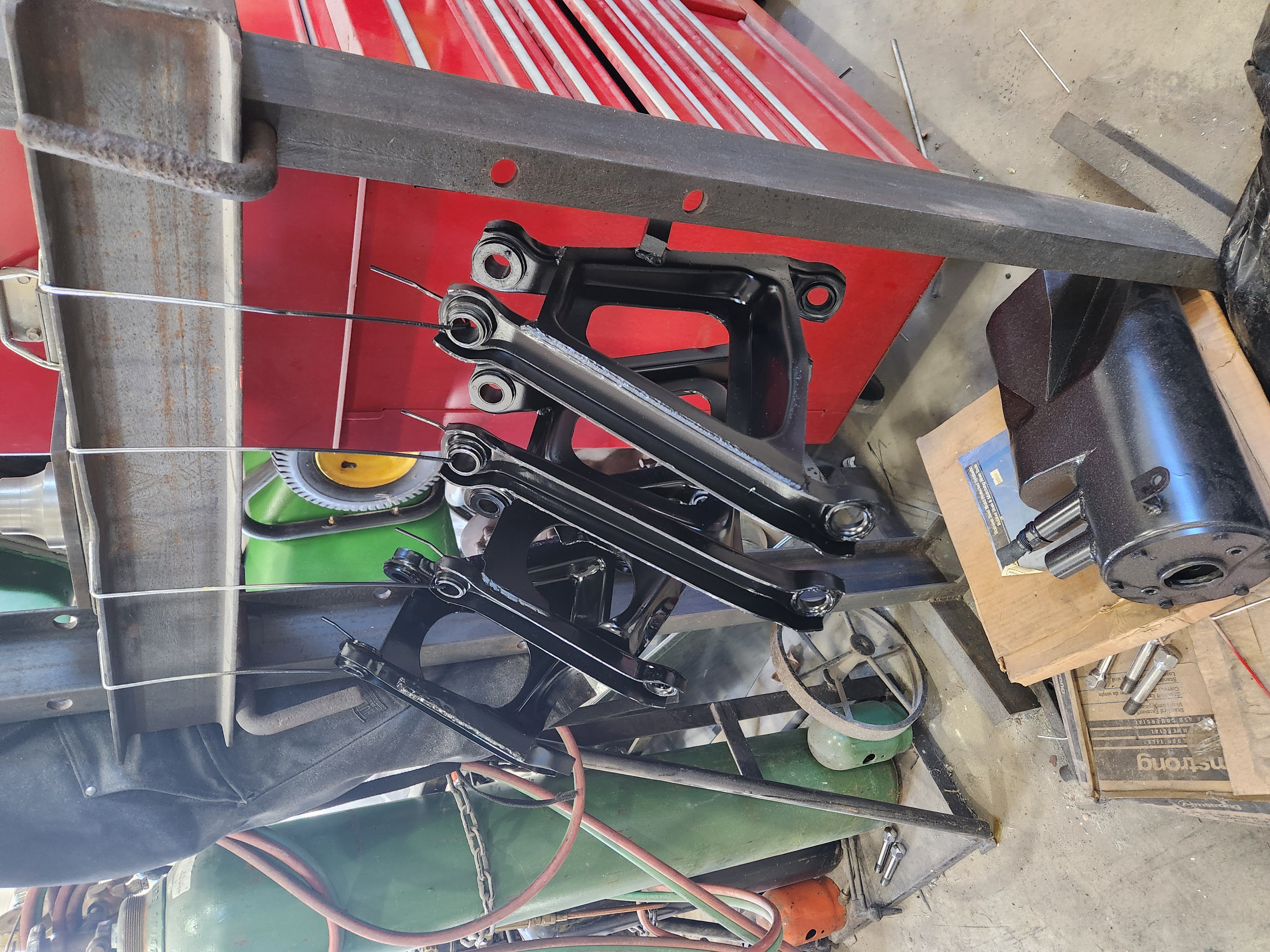 The forks have longer bolts to let me add the camber the super sticky tires like but they still need to be painted.