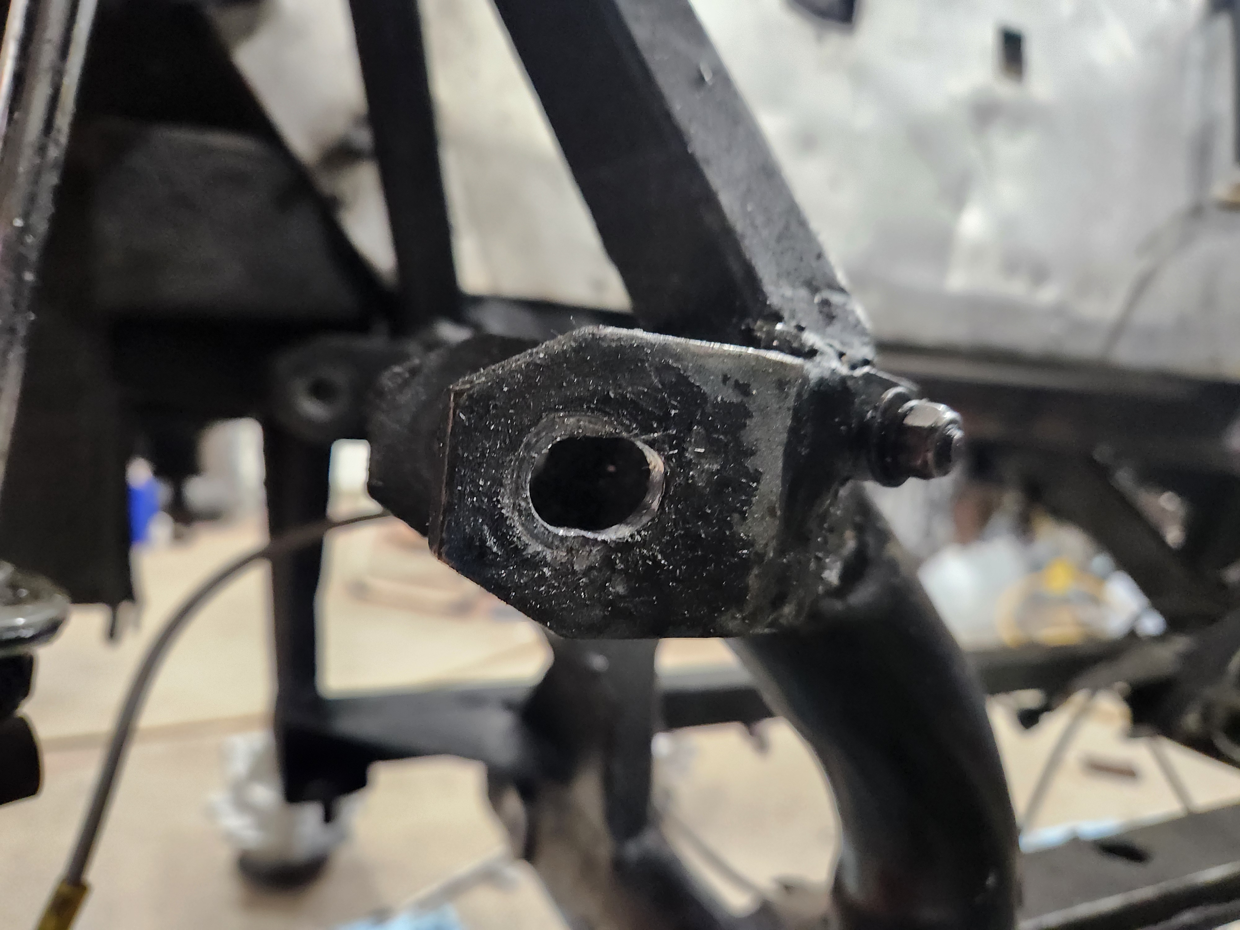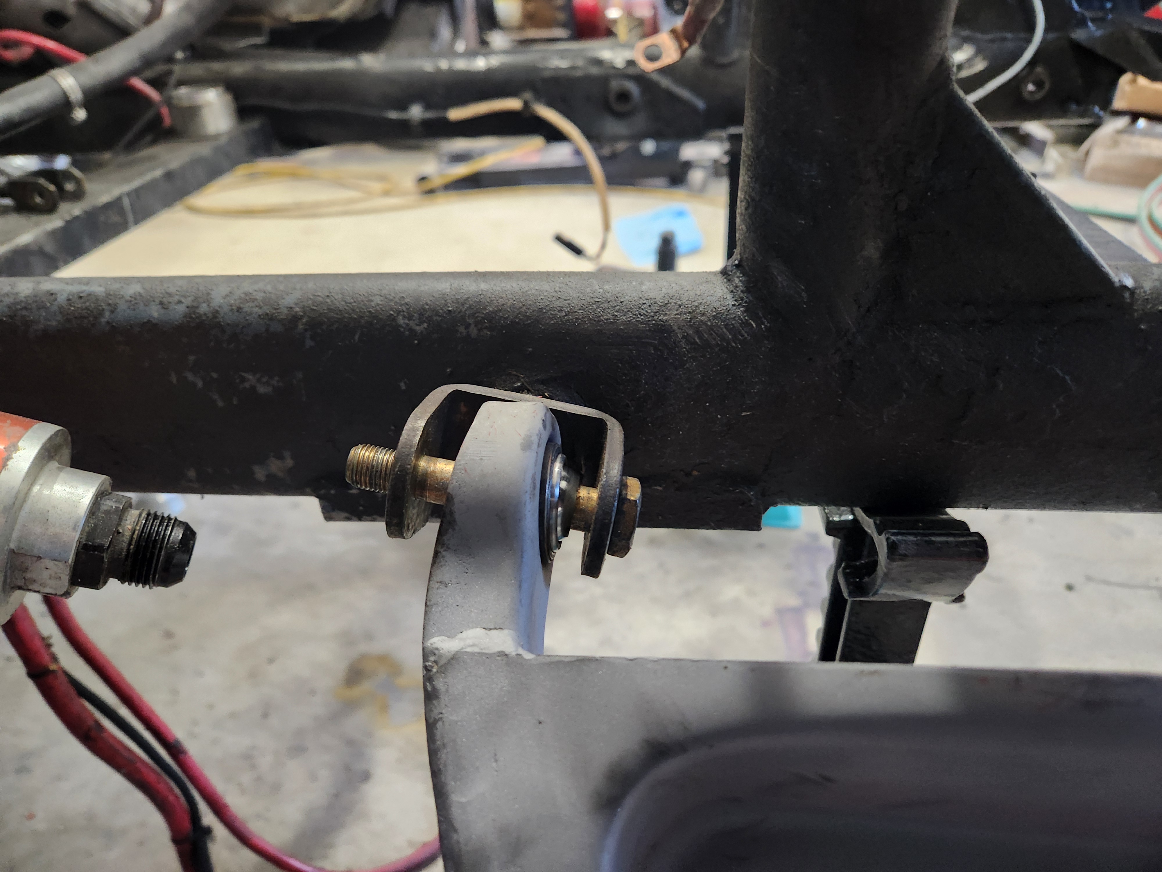 The front upper frame mounts are slotted to make make toe adjust possible with the bearings