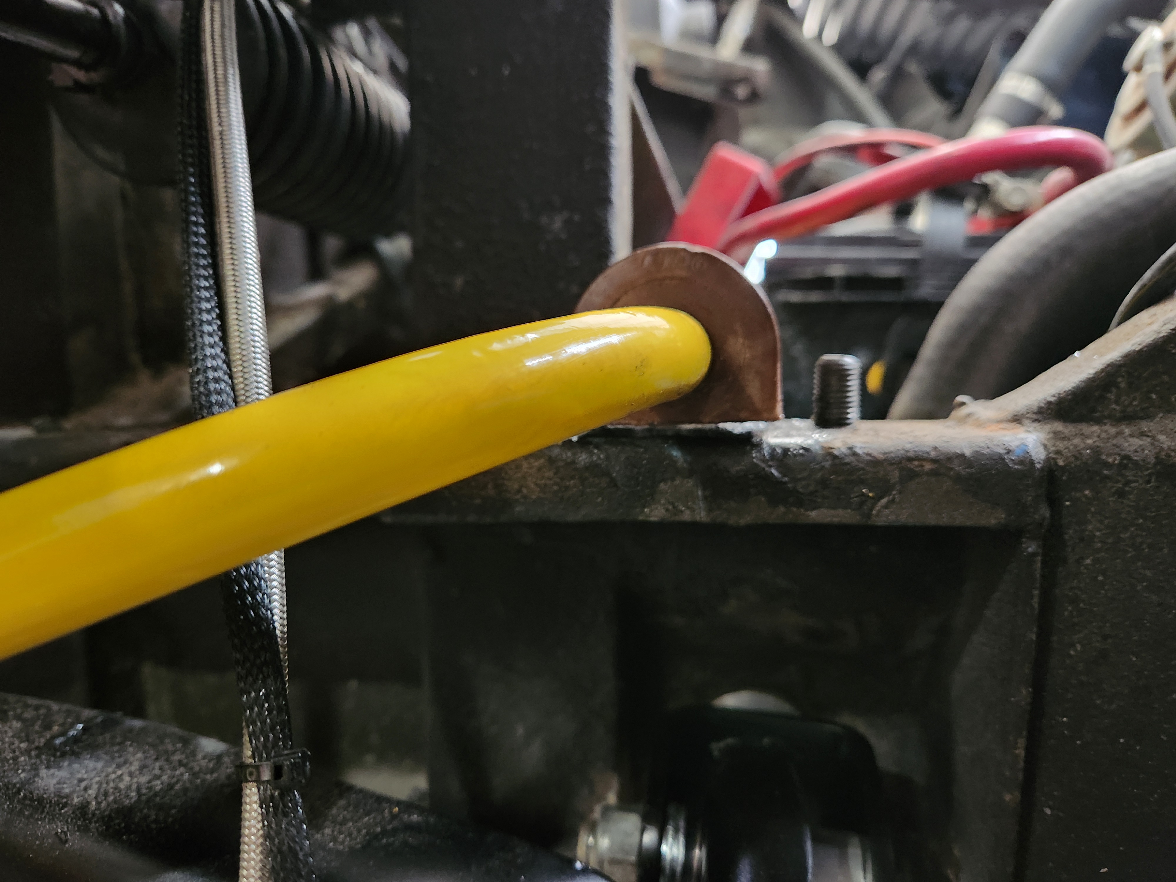 Installing the sway bar I noticed it has a little preload, I'll recheck that when its sitting level and adjust the end links if needed. 3/8 black pipe is just about perfect for the spacers, that was a good find at lowes this morning.