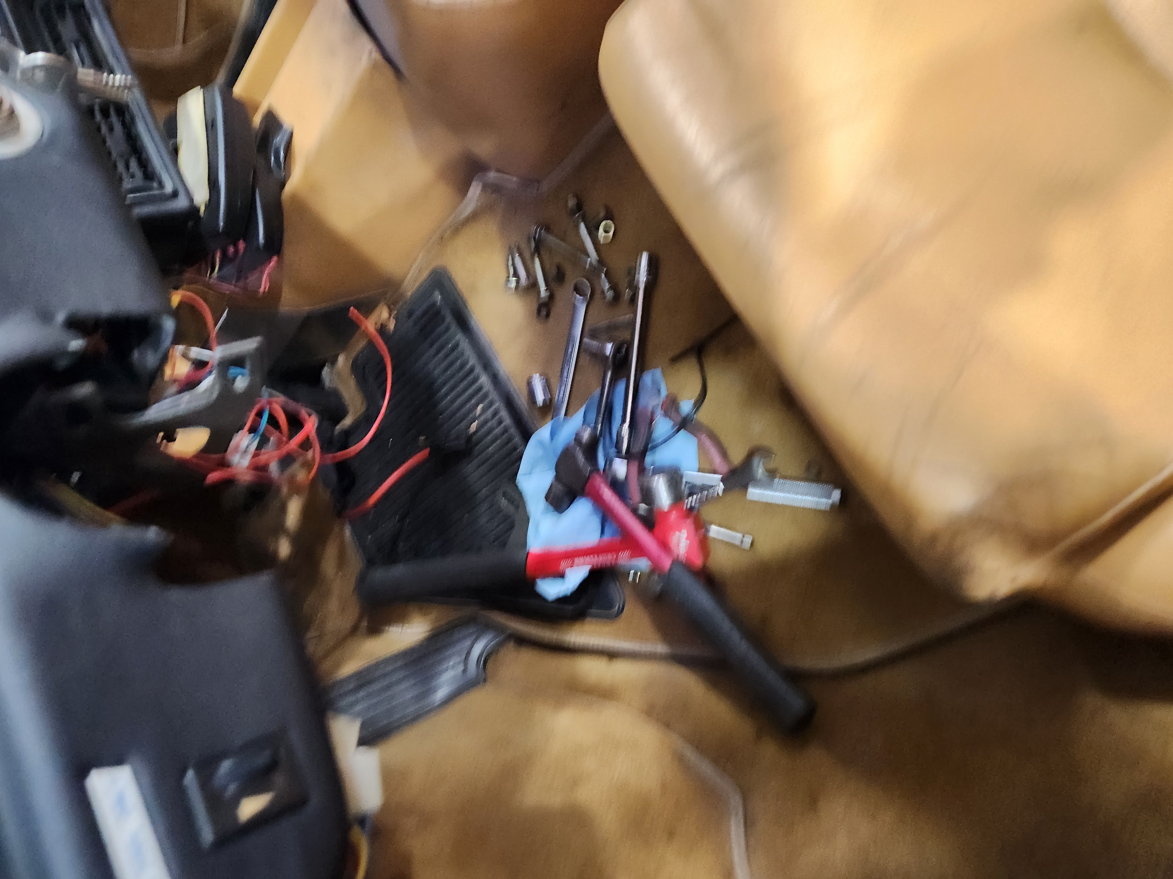 I guess I'll play with the power steering now. I have a plan that involves cutting up the broken stuff to steal the connectors so I can make extensions and not have the controller where my feet feet kind of want to be or falling and pulling on wires that shouldn't be pulled on I'm guessing.
