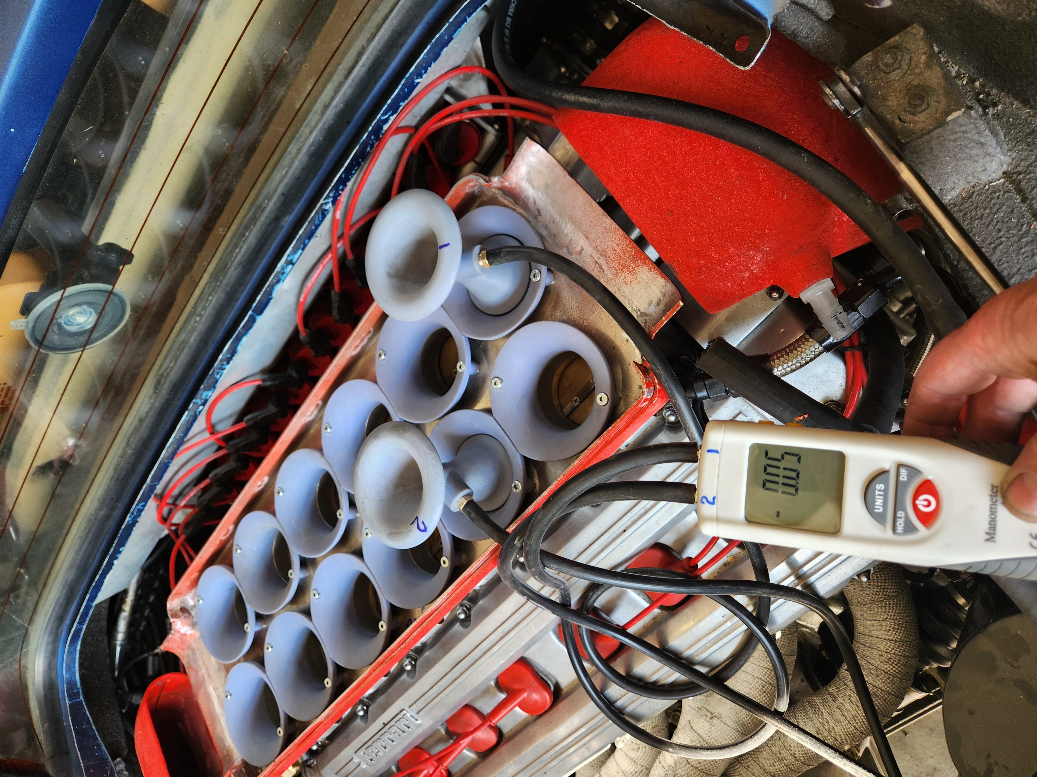 I did nothing to the cylinder trims on 1&6 and I'm pretty sure the TB screws didn't turn.....but I'll correct the fuel on them tomorrow along with whatever I find on the front bank. Weather is sketchy this week but there is a chance that for the 1st time in 20 years Wednesday will be bring your Ferrari to work day, if not the following Monday or Tuesday maybe. There is also a push for the 1st ever bring your father's ferrari to HS day.