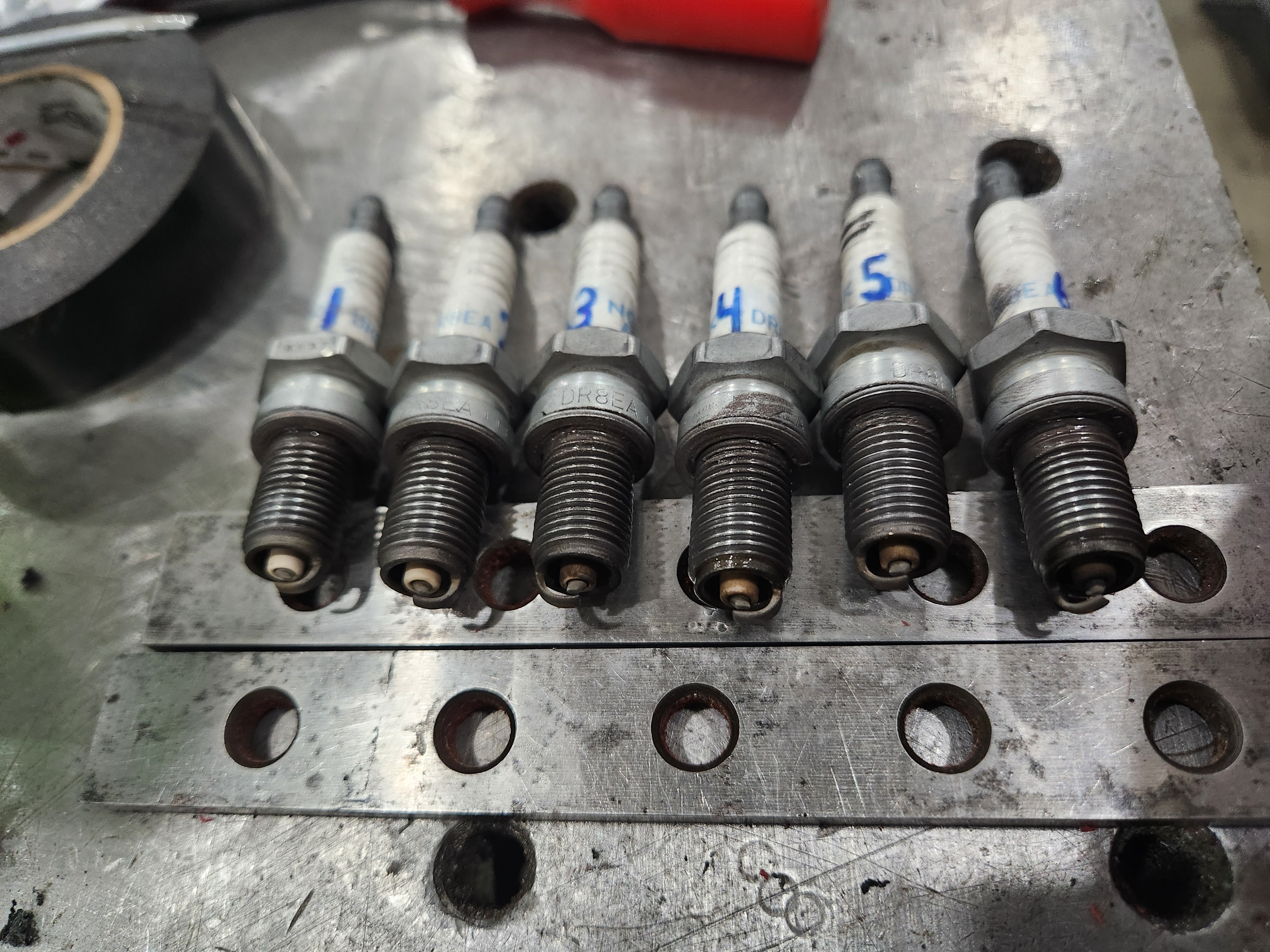 Given this I trimmed the fuel up in 11 and down in 3,5,9,12. I warmed it up and drove around the block 3 times today making main VE table adjustments after each drive and it was pretty good on drive 3. Its still hot but here are the rear plugs