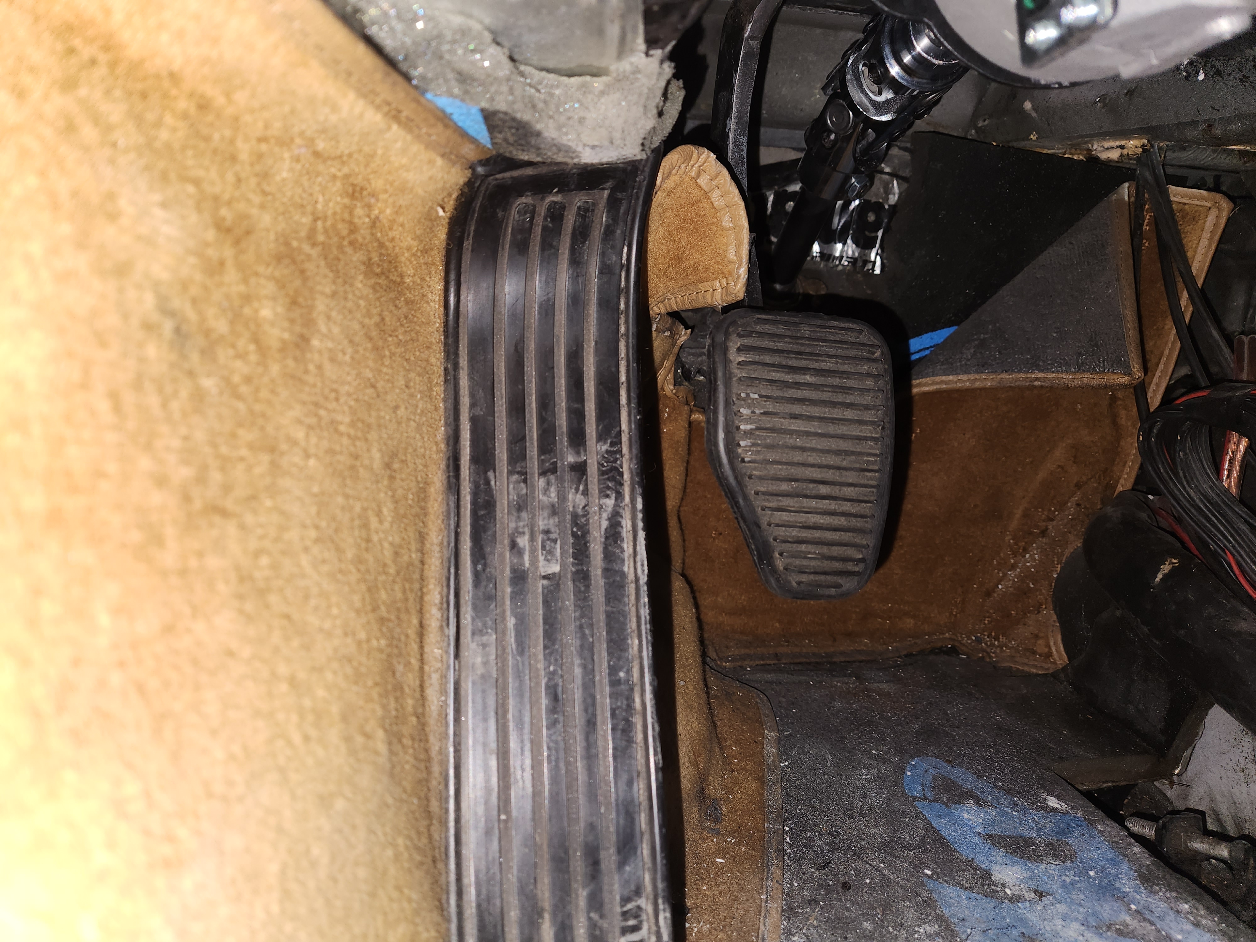 and that left the pedals here.....a little hard to see but the clutch is about an inch below the dead-pedal and the brake not as low but maybe 1/2" below the throttle all of which seems less than ideal.