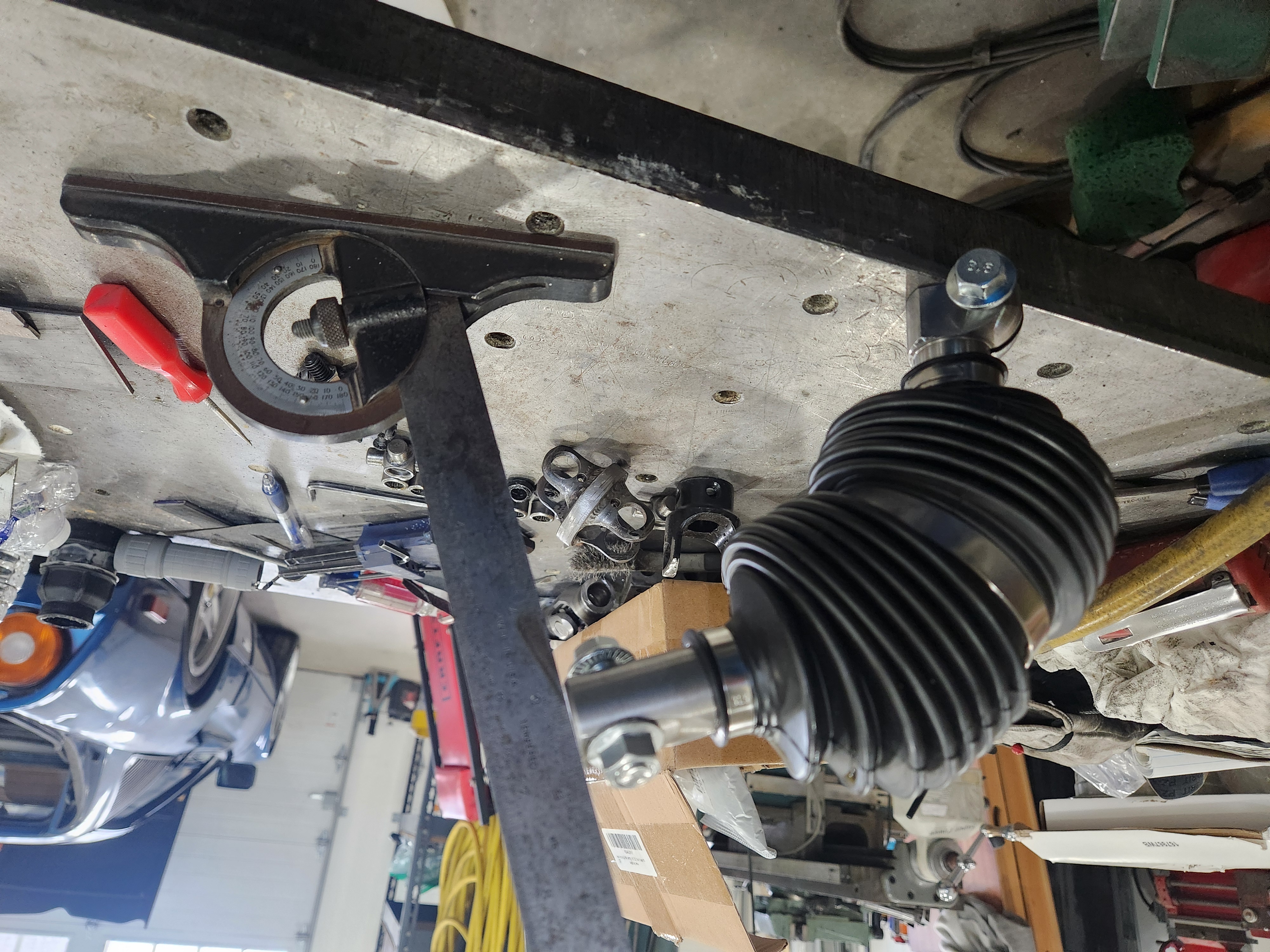 Toe set. I pondered what to set it to thinking more toe-in should help with the self-centering but it tends to make the steering feel slow from what I read.....so I settled on 1/4"@ 48in which I think is about 0.083"@16" and and the factory spec is 0.06"-0.10" so about nominal and just see how it drives before trying more.