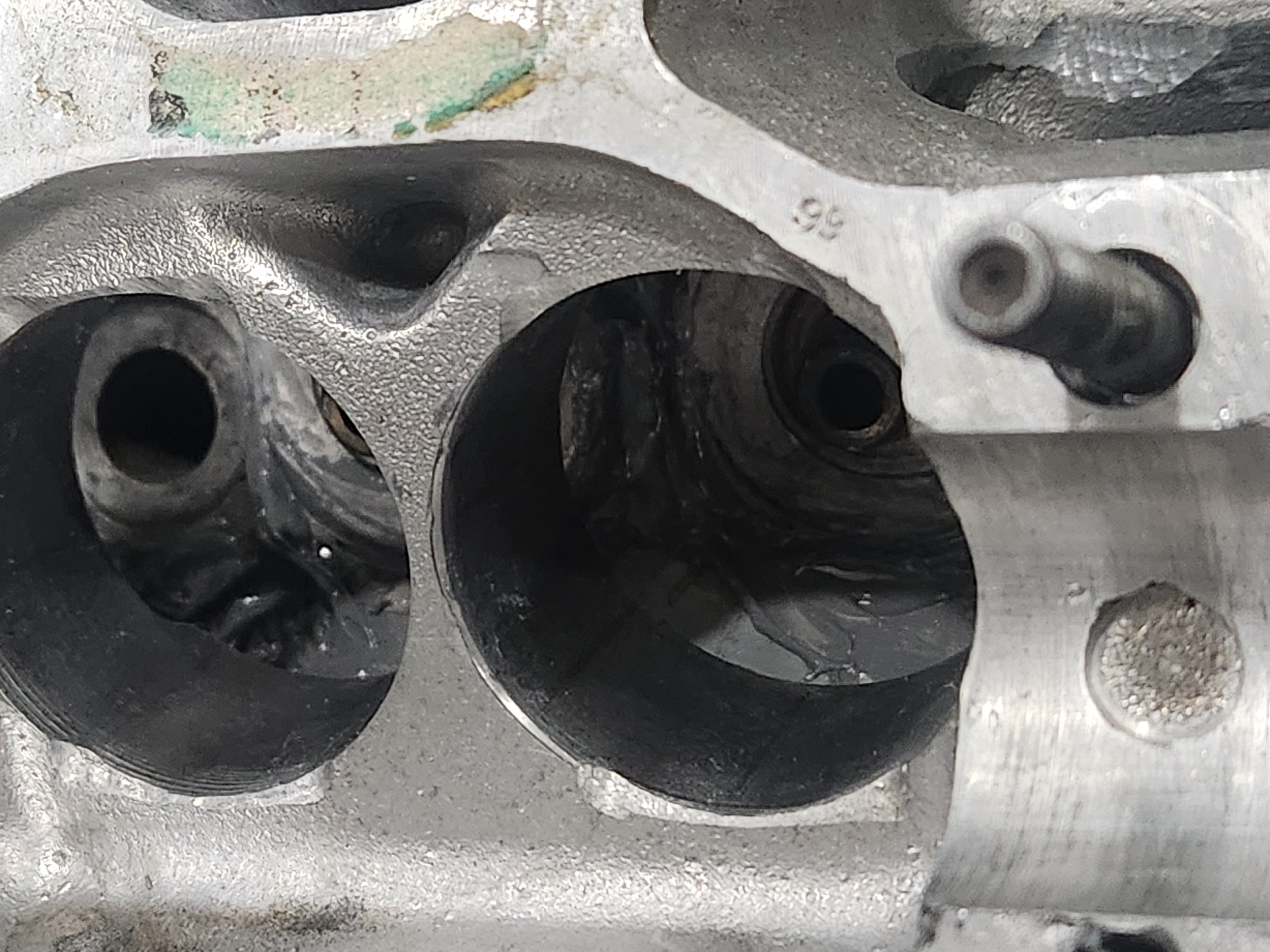 Kind or hard to see but I epoxied around the plates that are supposed to be sealing the cam galley from the intake port