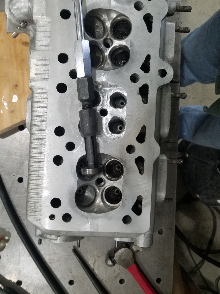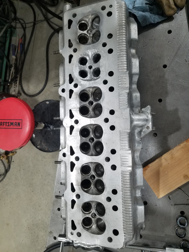 Pulled the seats out of the damaged head. It went pretty smooth, only pulled the weld of 1. They were a bugged to weld, they bubbled and spit metal onto the tungsten but o got them.
