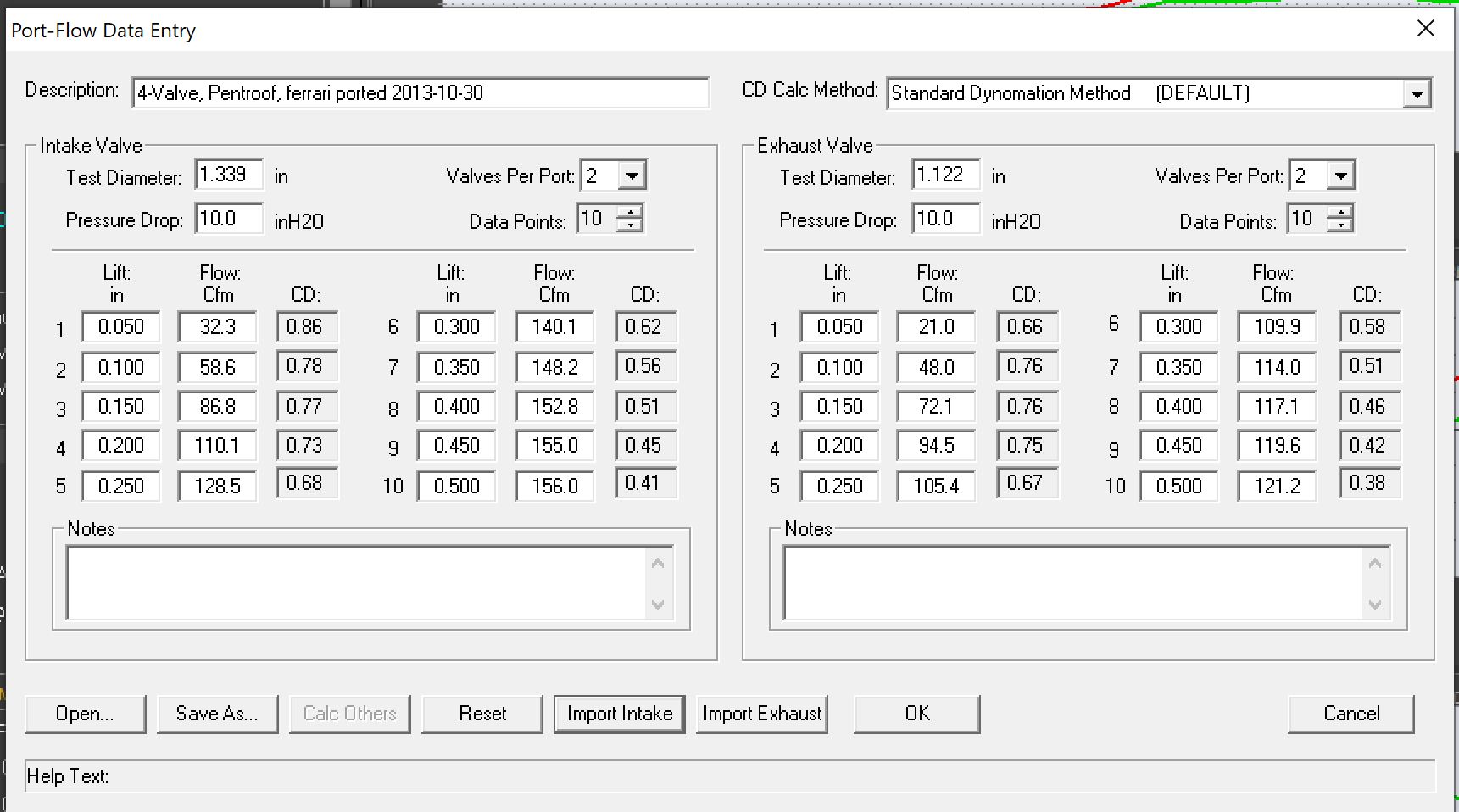 Just a couple items....the images are the screen captures for my engine so you can see what goes in the boxes. Some things are easy like bore/stroke, others are really test points like the exhaust specs cause you don't normally optimize around a specific set of headers, you play with the headers looking for what works best. If there are off the shelf cams you are considering we can approximate them from the cam card spec usually. I need valve sizes....port flow would be nice but I can approximate from the valves to baseline it. Intake style/design we need but we can look at options just like with headers.