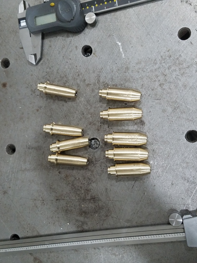 On the the next head. The new seats cut WAY different as in way worse than the old seats, same part numbers but very clearly different material...that suck but not the end of the world. Damaged chamber seats cut. then I changed 2 guides...1 cleaned up at about 005 which is fine, the other at 015 so probably replace it. that got me measuring things....hmmmm...why when I drop this valve in the holes in this head is it sitting .010 higher from the deck than when I drop it in the hole in the other head? That is where I ended my night.