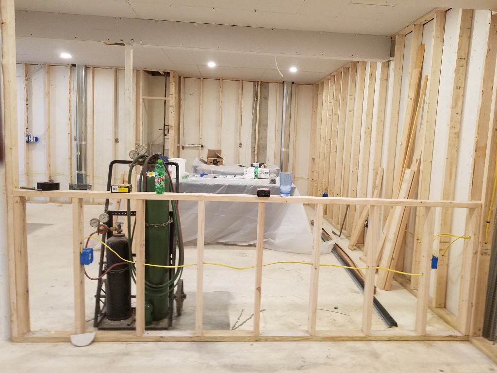 Lana has a few decisions left open to let me finish both the ceiling and the framing. I really like vodka and lemonade, even more than beer usually....so the bar really needs ice. The plan is a about a 10ft counter we can set food out on and under the counter 24" cabinet, 3 24" glass door coolers (beer, wine, soda), 24" cabinet....very symmetric so it works with my OCD...then I remembered ice! there will be a small sink on the counter, and an ice bucket is easy but where does the ice come from? upstairs?...that's a of of walking when I'm drunk.....maybe a fridge in the storage area (we have an old fridge down there now we use on party days for extra beer, birthday cake, etc, but off most of the time....or in the little hall to the bathroom but them the old fridge need to be replaced since it will be seen.....or reduce the storeroom and add a small pantry like area that hides it and adds a small counter and/or more cabinets , I've already plumbed in a utility sink which would them be in the pantry)? Lana needs to tell me what she wants which then determines the little hall width and I know where to cut the light holes to center them in the hall and make a straight row out into the room (remember my OCD).