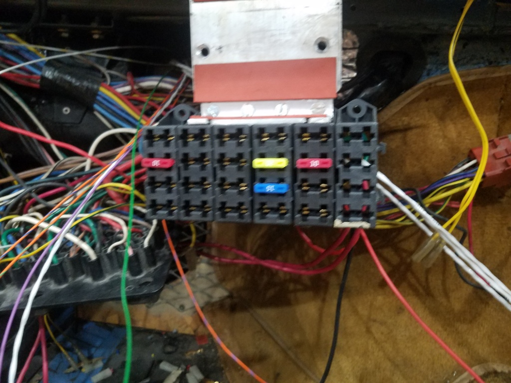 I bought a motec M800 and decided to mount it in the the cabin....that is the M800 bracket I made that the fuses are bolted too. it was going to slip up under the dash and I decided to just replace the fuse box with modern stuff along with adding extras for the ECU....then the stock relay panel was right there and it would be a super net install.