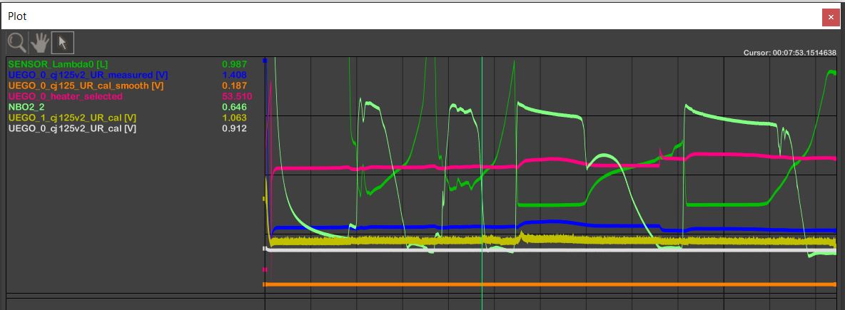 And that is where the night ended. I have readings but there is a bit more work to be done. I suspect that internally the ECU is adjusting the gain on the sensor at lambda=1 from 8 to 17 and then back to improve resolution over the range and that is causing my tuning issue...which brings me back to I don't believe the model I downloaded and have pretty heavily modified at this point ever ran a real sensor.