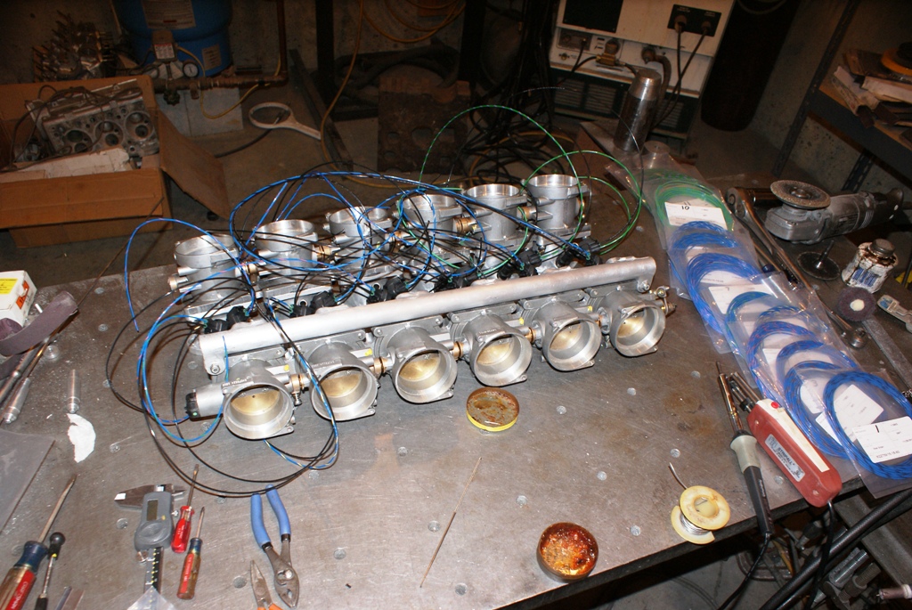 Then on to some wires. I mostly made up the fuel harnesses but didn't have the proper heat shrink for the connector end. I'll get that ordered Monday, but the TBs can now be installed for keeps as is I think.