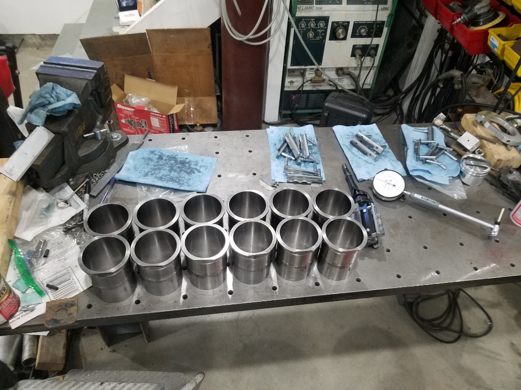 Fitting the crank properly is next. Because the block readings were coming out a bit wonky I had the machine shop leave the crank on the high spec for -.010 undersize and will line lap the main journals. Shipping a lapping bar without damaging it means a create and still worrying so I asked Wade to measure his bar and it's 6 tenths undersize so I ordered a 24" long x 2.625 Dia (+0/-.0005) ground steel bar from mcmaster....but not in keeping with mcmaster reputation for EVERYTHING is in stock and delivered the next day, they said 2 week delivery. 24" long is $193, 36" which would probably be better is $280....but 24" fits in my lathe so I can sand it down to the desired OD relatively easily and will just make it end to end in the block if I weld on an extension so I can turn it. Hopefully this will be all done by the time the pistons arrive home.
