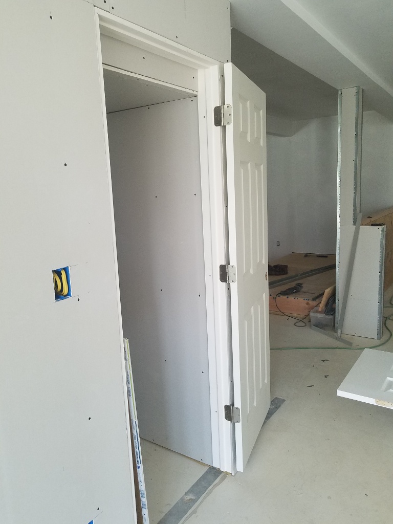 There is a closet under the stairs, the location of the door was picked early on...then moved to the side with the steel column kind of in the way so it was either a 24in door (vetoed) or a 28in with an anything but normal install...it looks normal from the outside and doesn't really look wrong inside but I JUST got it in there which all takes time to figure out and do....all because " I think it would look nicer if you don't see the closet door as you walk in, thanks". I can't even imagine what this would be costing were I paying for labor...you know, other than the ferrari engine just sitting.