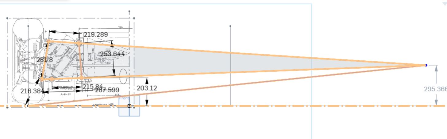 Then eyeballed points at the suspension pivots and put lines through them....instant center 295.36mm