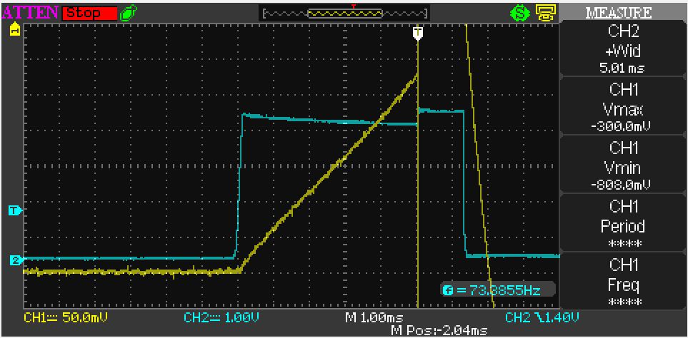 Below is what I found for the coil charging. These coils fire when the current gets to 8-8.5A according to this test and that is about 5.5ms dwell so looking at the shape in integrating in my head.....6A is probably too high, 5 maybe for a total draw for 20A at redline might be a closer guess.