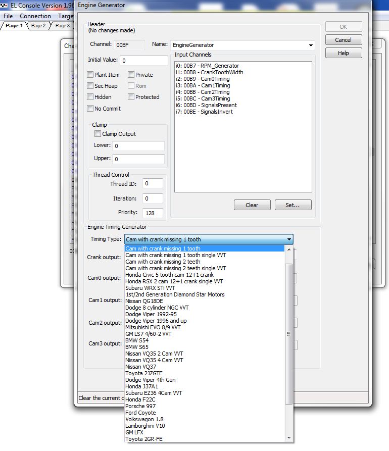 Its got about 30 different crank/cam pattern options and you can assign them to any of the output channels and then put a control on the user screen to set the test RPM. Hopefully I can just jumper the signals...but it might need a pull up on it, I'll find out soon enough.