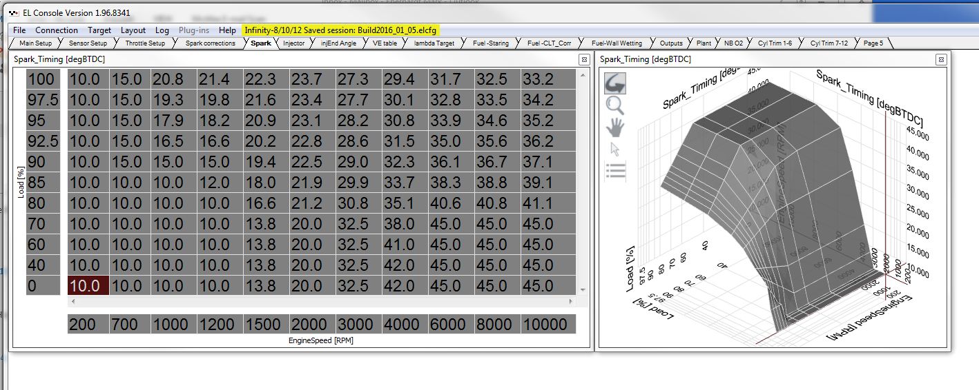 I was amazed how close the simulator was to the stock QV timing . QV is 32 degrees at high rpm....the sim is telling me 33 and I have a slightly bigger combustion chamber so it seemed right so for full power I pulled the numbers straight in as the base line. Ferrari didn't add really any addition advance under vacuum but I've always found it helps especially if the mixture is leanish under vacuum which I usually do so I through some more advance into the base table.