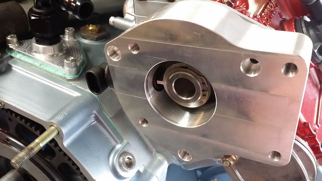 We did have one event that was a 'pucker factor 11" .... Just about to hit 8.5k on a pull when all of a sudden there was an explosion of oil and smoke !!!! Immediately shut it down and went in to investigate. The scavenge pump was loose and one of the low side hoses from the pan was off. Somehow the bolts that held the adapter plate for the pump had worked loose and since they are captive it backed off the pump assy, the pump stopped turning and the hose also managed to unscrew itself as well ??? The real scare was weather or not the cam survived.... Oh and the cam timing trigger is also in this housing... I must have a solid gold horseshoe in my ass that weighs a ton! ZERO damage, ZERO! reassembled and back up to pulling to 8.5k inside an hr. The clearance between the trigger and sensor is 2mm how it didn't touch anything I'll never know!
